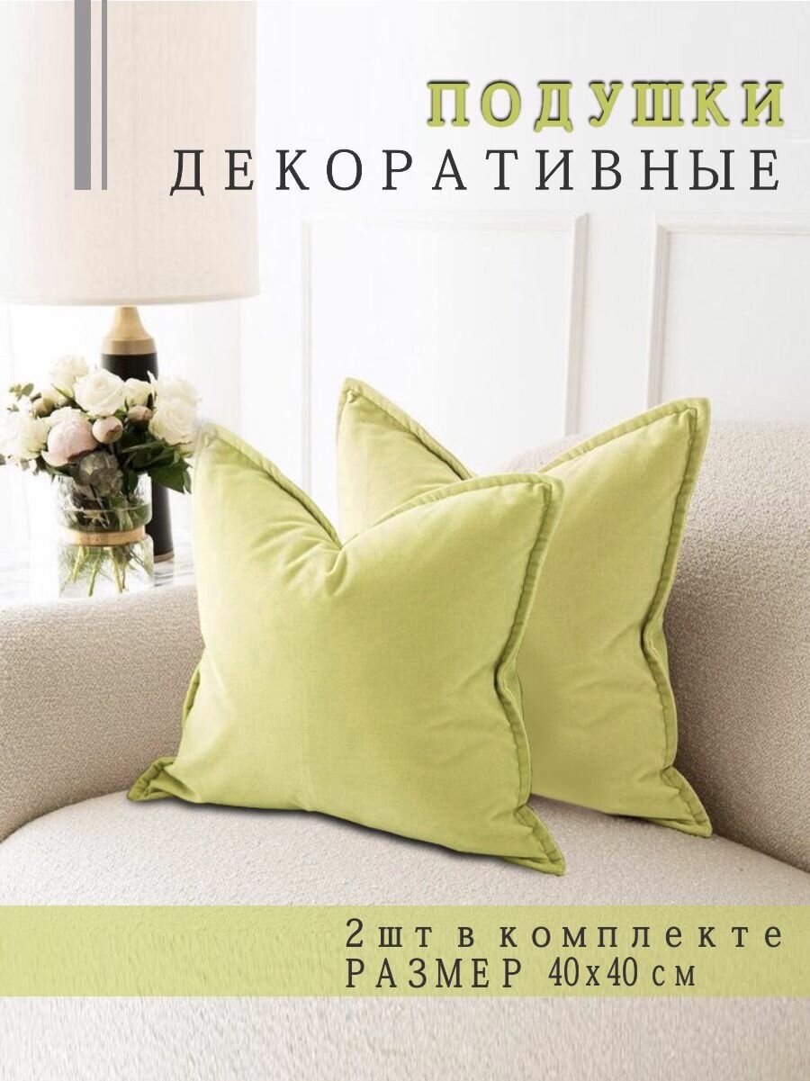 Купить Подушки декоративные Nemos 40x40, 2 штуки, фисташка, квадратные, из велюра