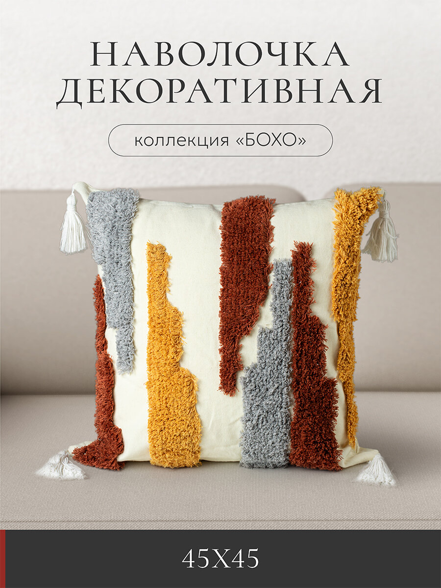 Чехол декоративный на диванную подушку 45х45, Эспера "Deco" Бохо 4