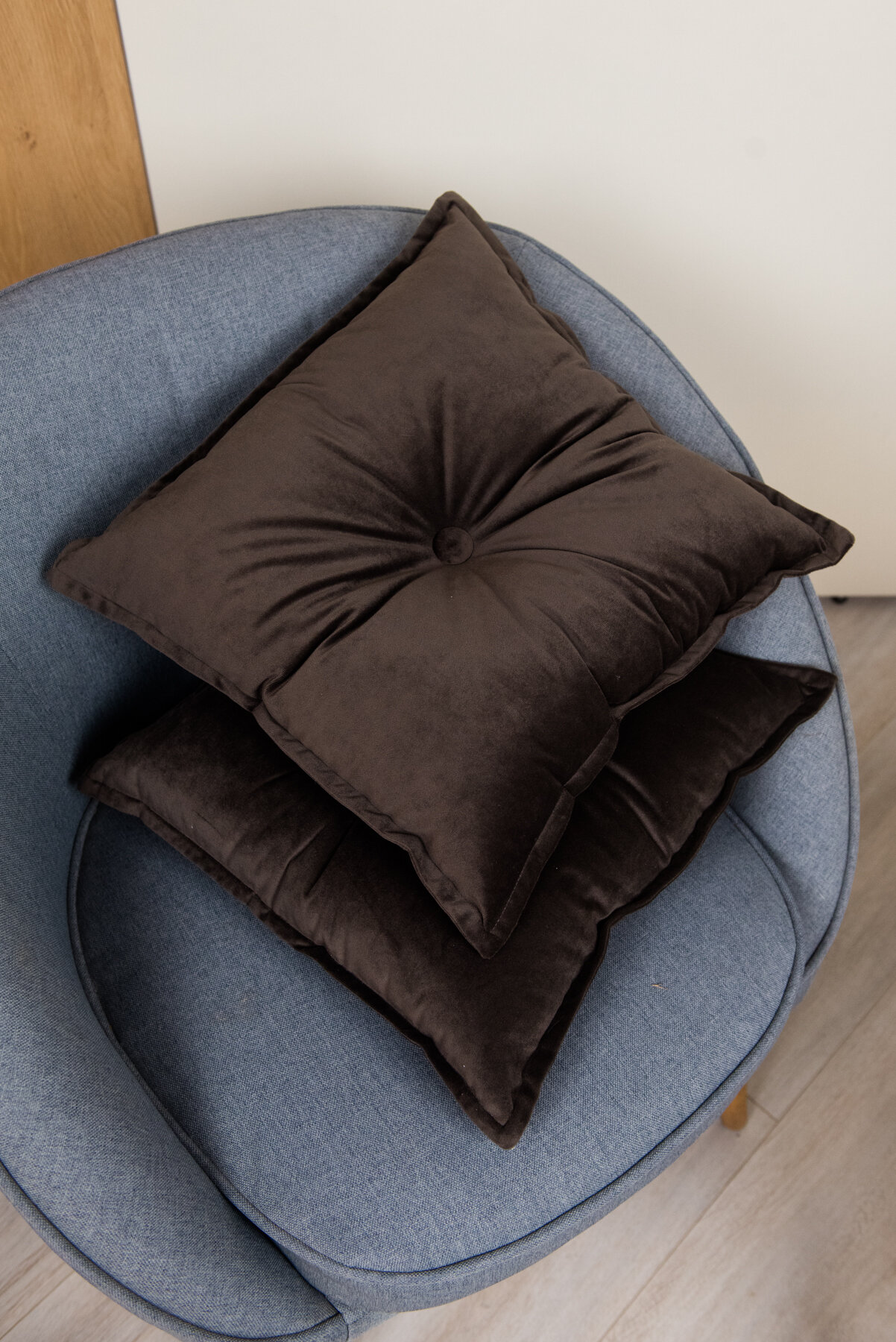 Купить Комплект подушек 45х45 бархат с пуговицей с отстрочкой, шоколадный, 2 шт