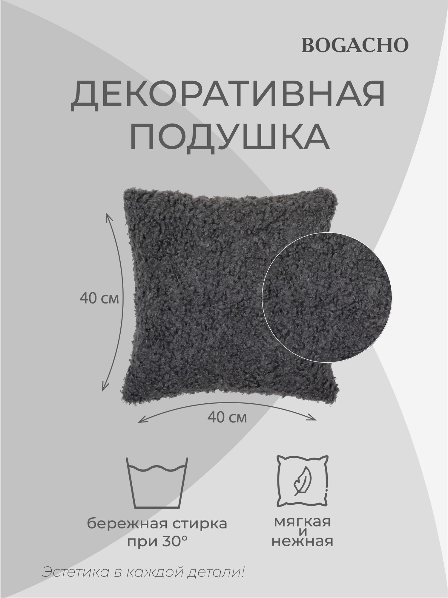Мягкая декоративная подушка на диван и кресло BOGACHO Вельвет из велюра