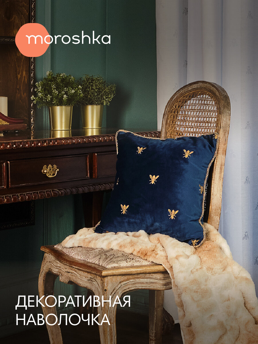 Декоративная наволочка Moroshka "Zolotoy Roy", бархат, с вышивкой, 40x40 см интересное: