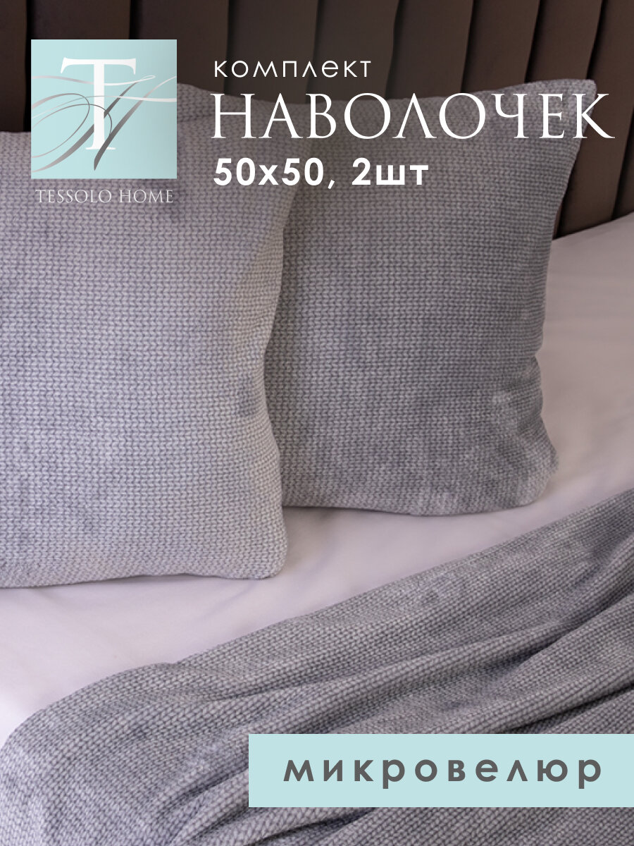 Декоративные наволочки 50х50 на подушки MICRO VELUR, "Жаккард", 2 шт. графитовый