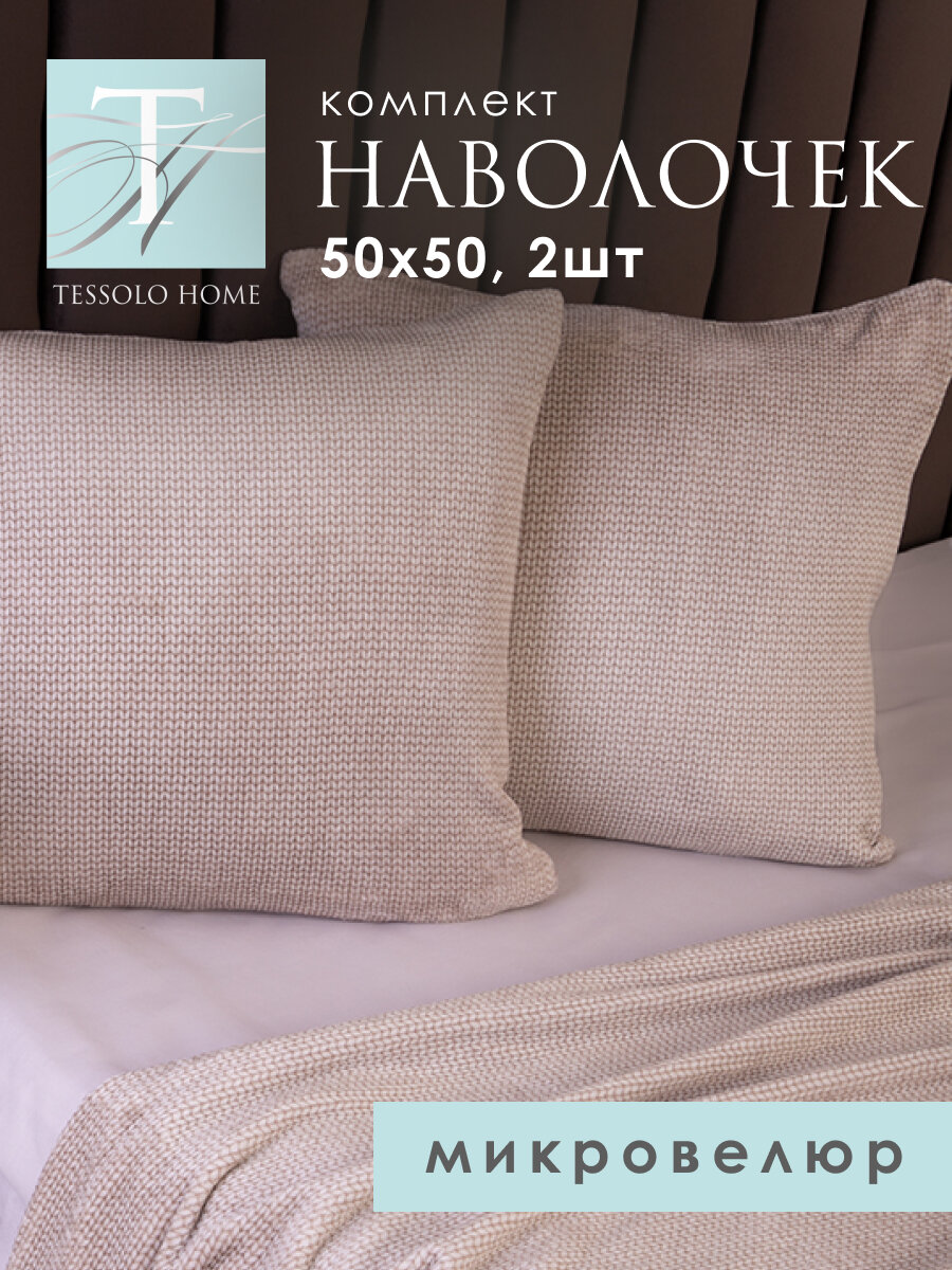 Декоративные наволочки 50х50 , 2 шт, микровелюр, "Жаккард", бежевый