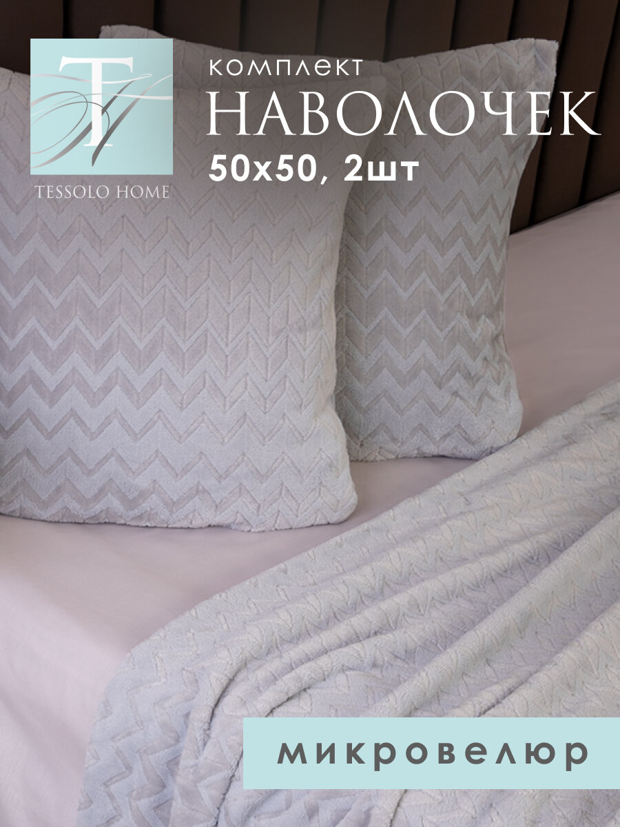 Декоративные наволочки 50х50 на подушки MICRO VELUR, "Жаккард", 2 шт. молочный