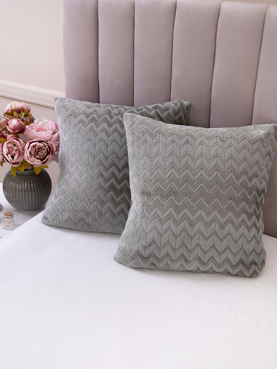 Декоративные наволочки 50х50 на подушки MICRO VELUR, "Жаккард", 2 шт. графитовый