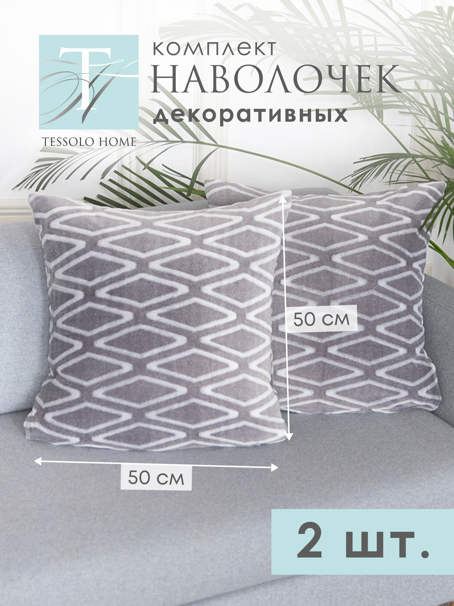 СохранитьДекоративные наволочки 50х50 MICRO VELUR, "Ромб", 2 шт. серый интересное: