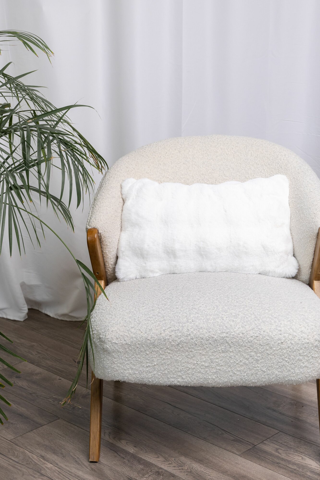 Подушка декоративная из кроличьего меха шарики, 30х50см, кремовый