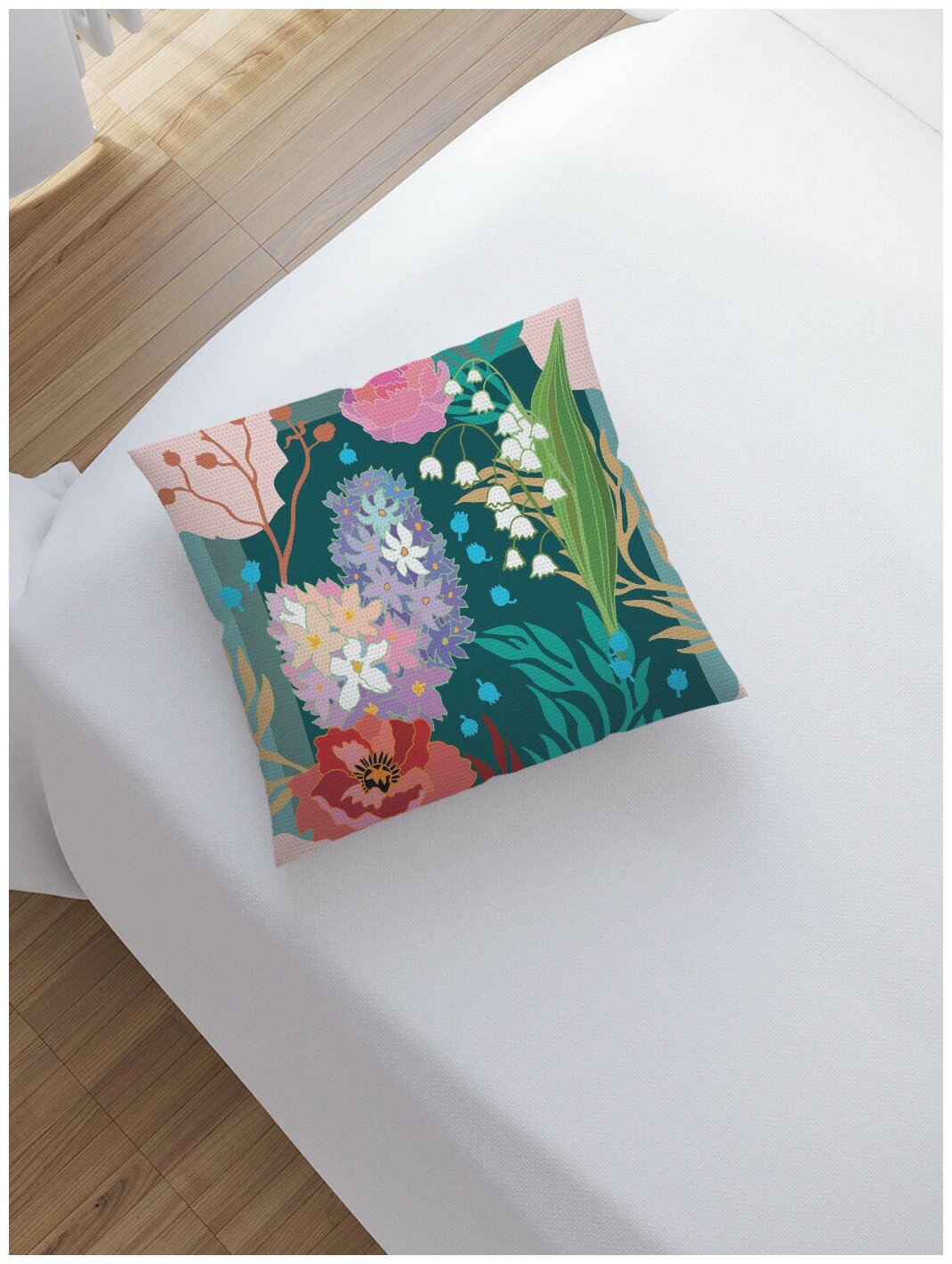 Наволочка декоративная JoyArty "Ландыши и розы" чехол на молнии, 45х45 см интересное: