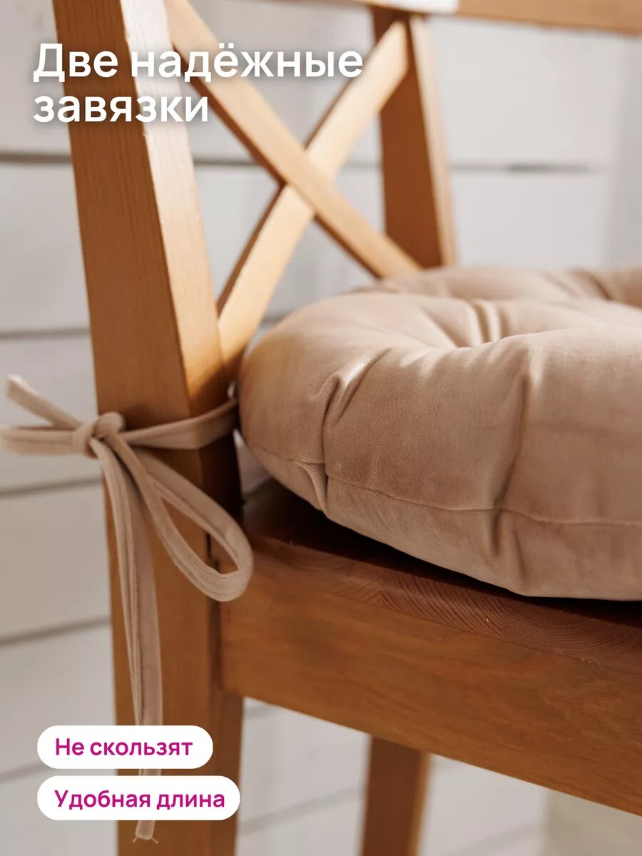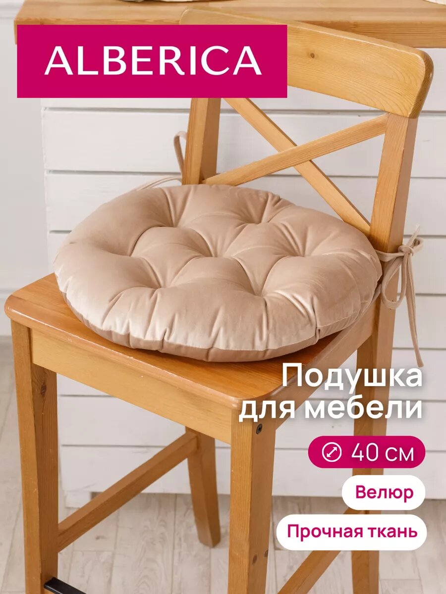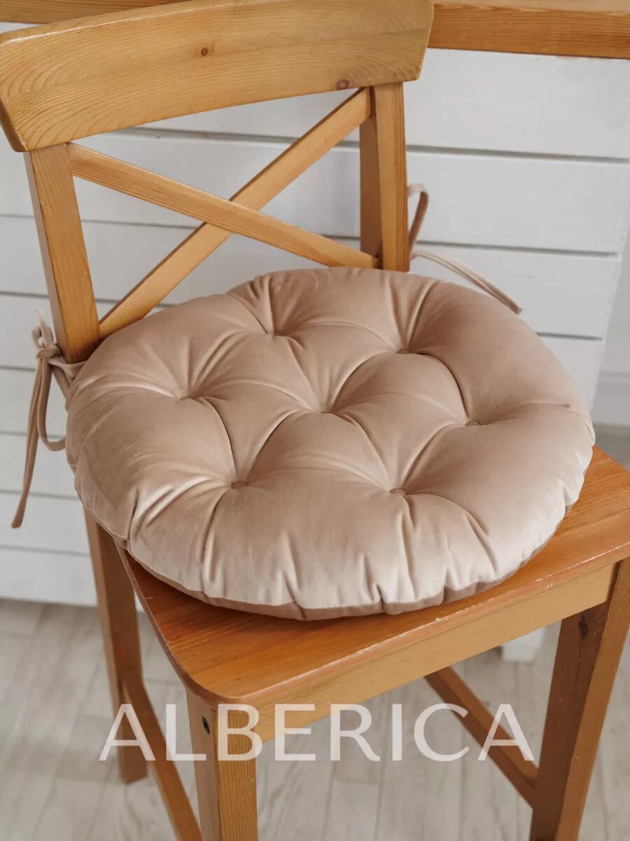 СохранитьПодушка на стул ALBERICA, 40x40 см, круглая, кремовая, велюр, синтепух, для детей интересное: