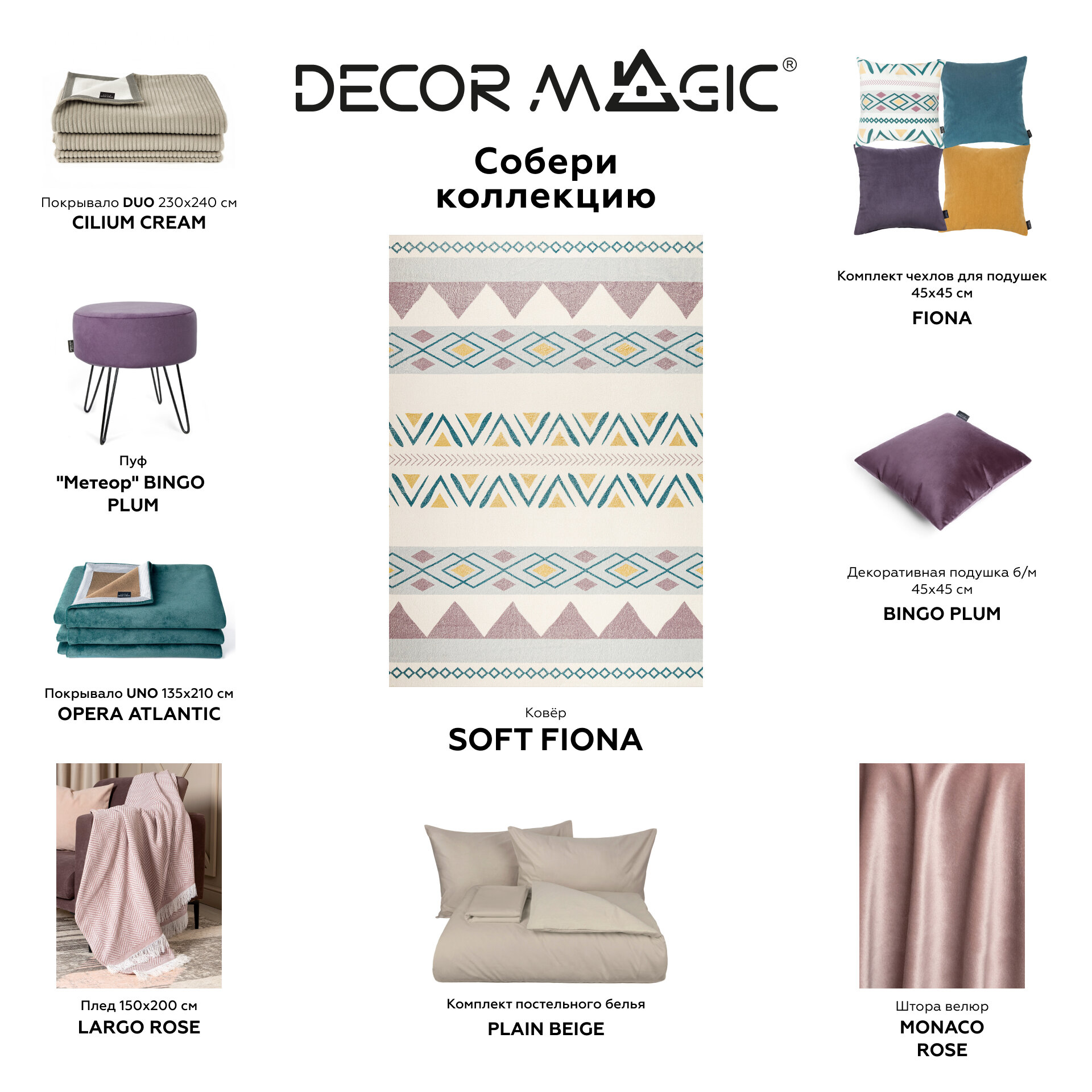 Декоративная подушка DECOR MAGIC RUMBA 45x45, съемная, с современным рисунком, 2 цвета