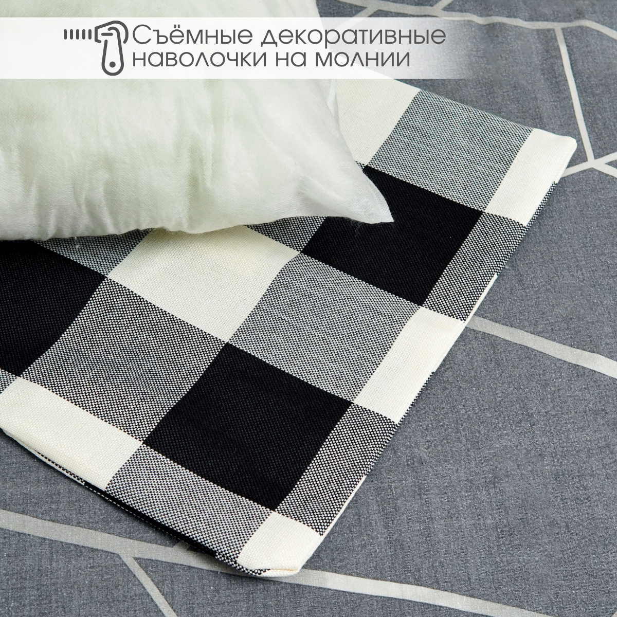 Купить Декоративная подушка Идея и Точка, черно-белая, в клетку, 40x40см