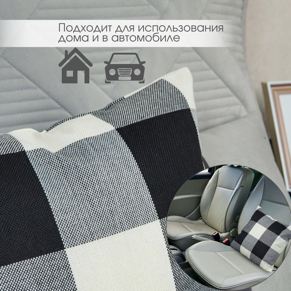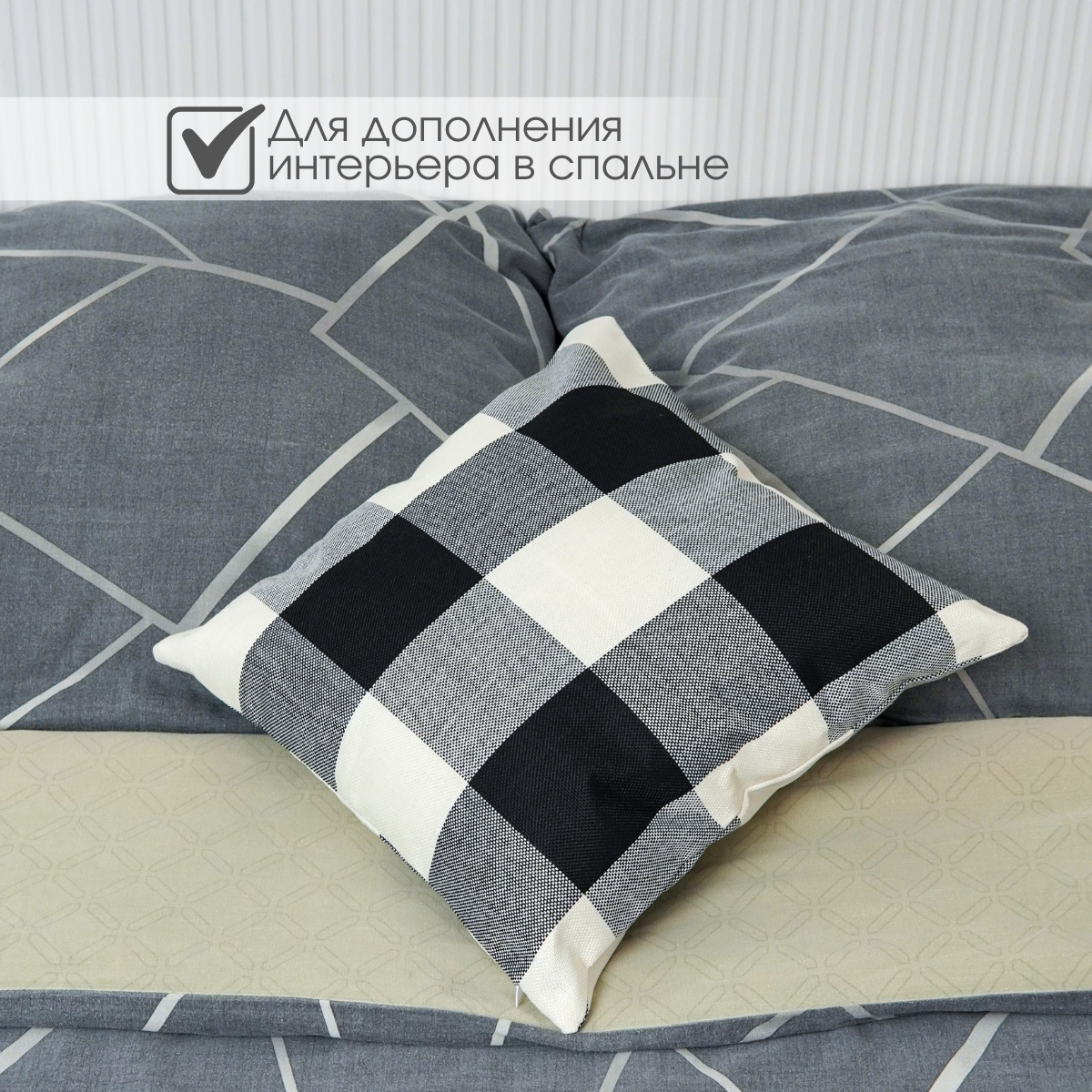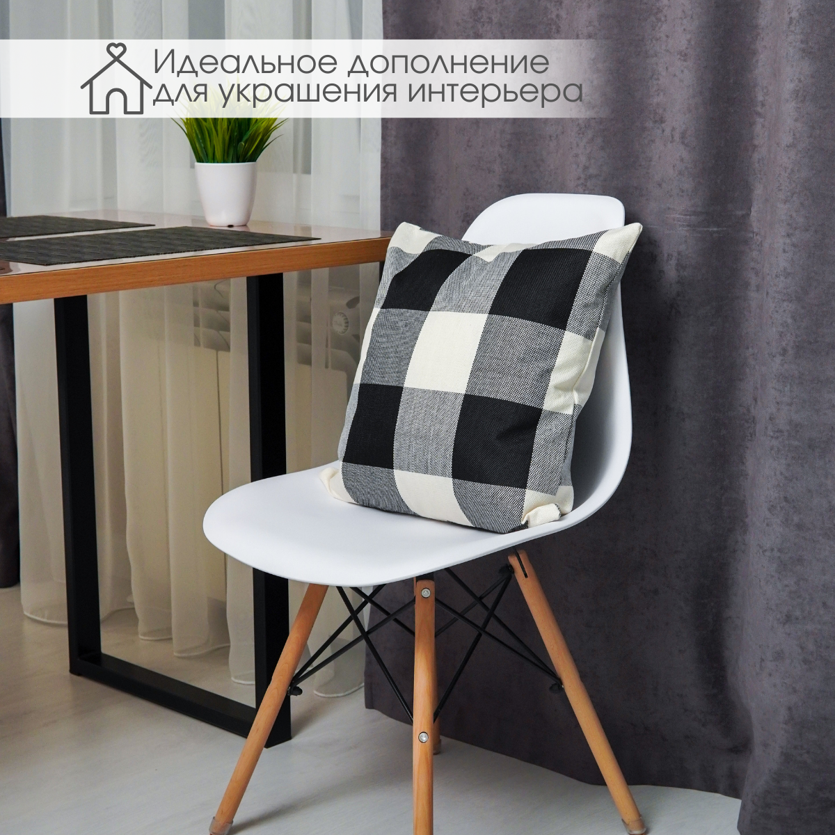 Декоративная подушка Идея и Точка, черно-белая, в клетку, 40x40см интересное: