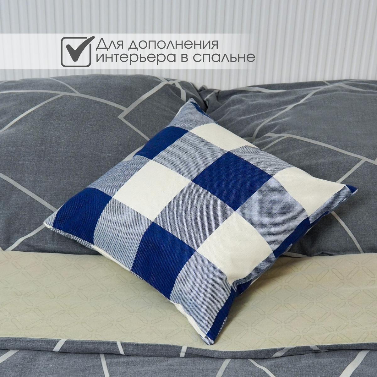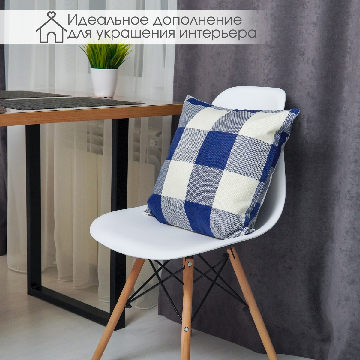 Декоративная подушка Идея и Точка, черно-белая, в клетку, 40x40см