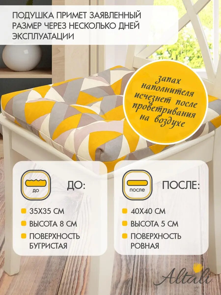 Подушка на стул 40х40 см на завязках, хлопок Хайтек / Altali