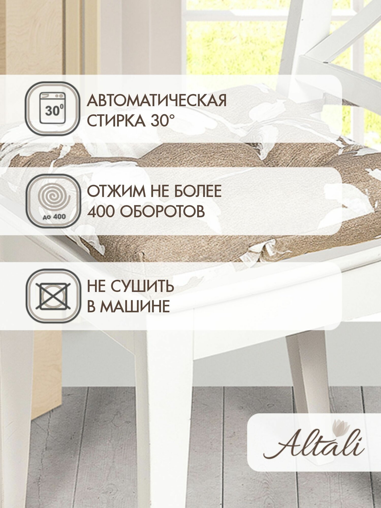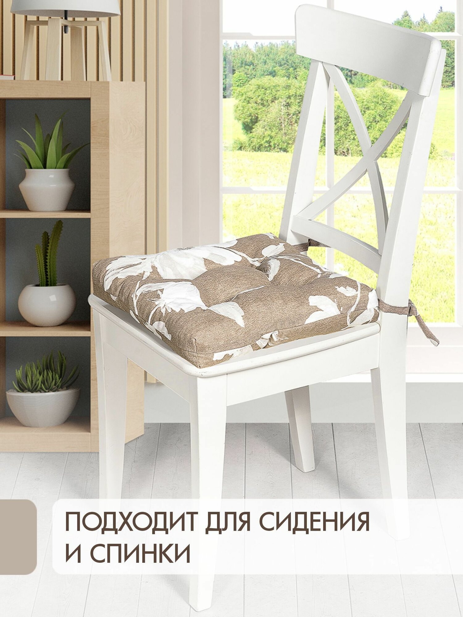 Подушка на стул /40*40 см /на завязках /ткань хлопок /для кухни, зала, гостиной, беседки/ Верона / Altali