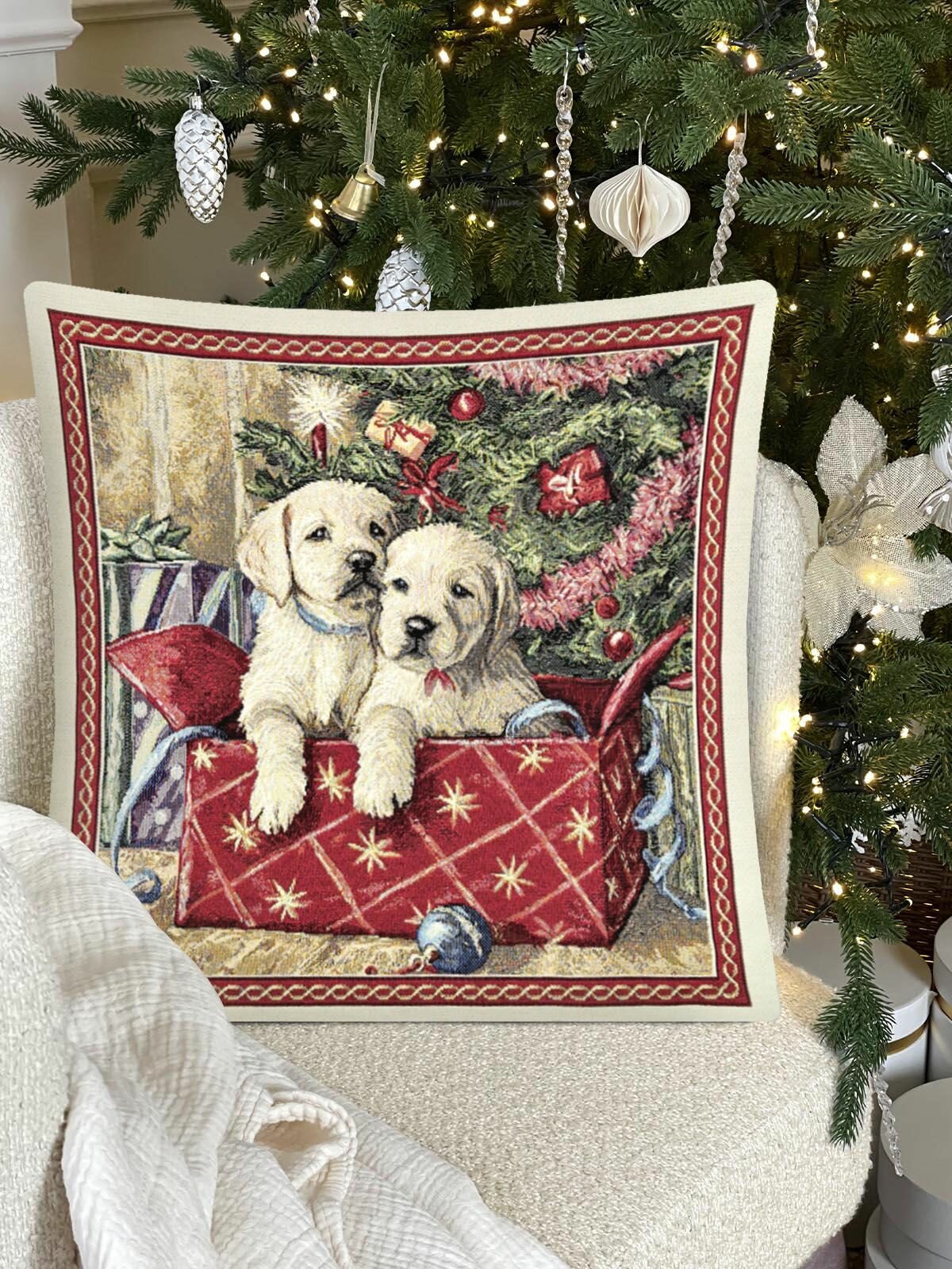 Купить Наволочка новогодняя Le Gobelin Рождественский подарок Щенки 45х45 см