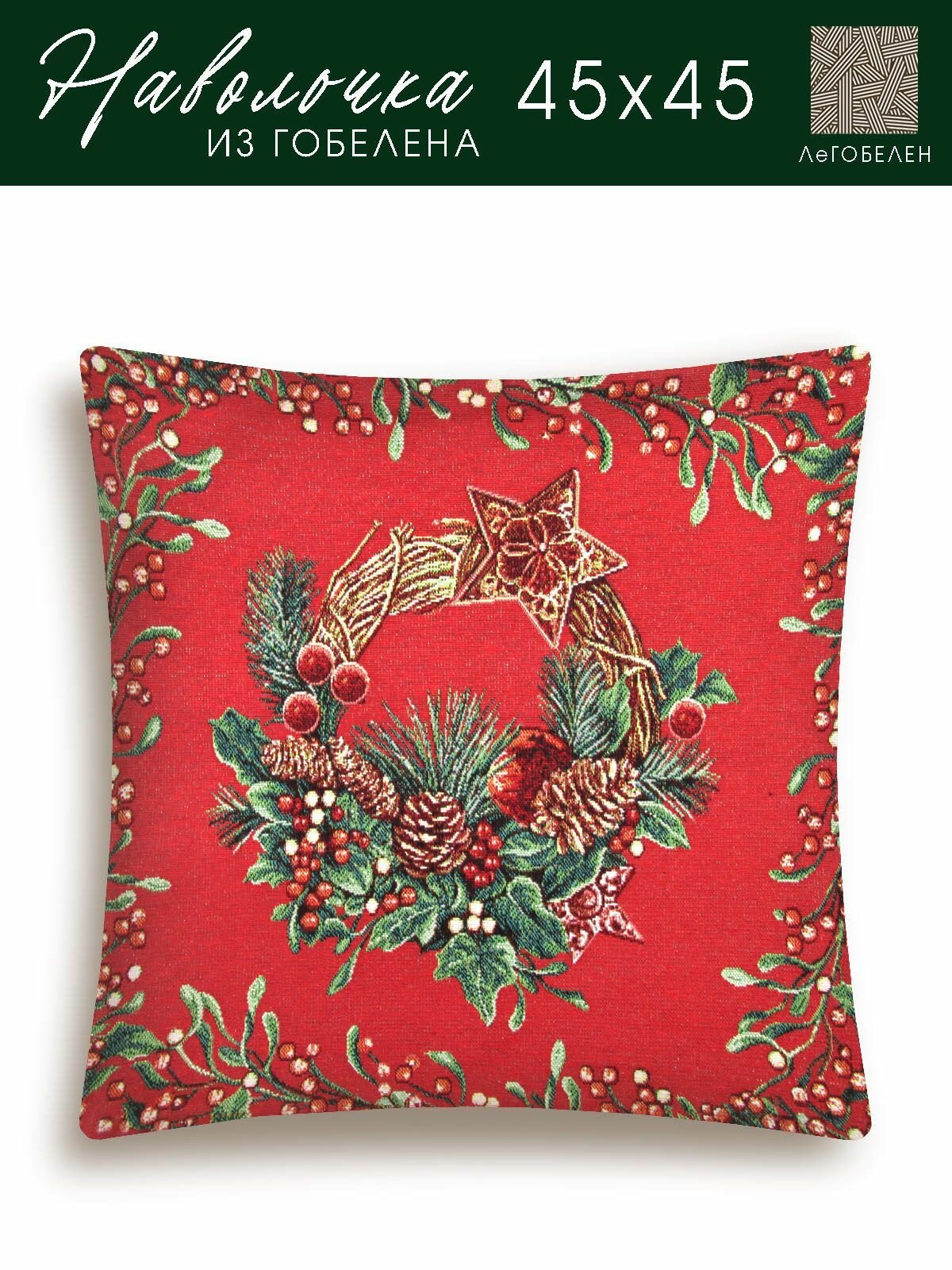 Купить Наволочка новогодняя Le Gobelin Рождественский венок Ягоды красный фон 45х45 см
