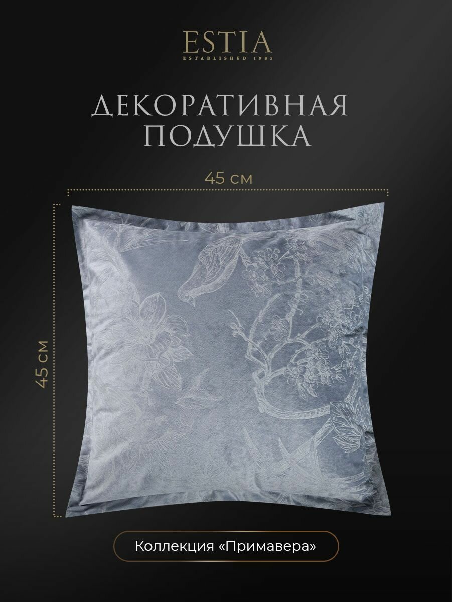 СохранитьESTIA Подушка декоративная в подарок "Примавера" с молнией, бархат с тиснением, 45x45 интересное: