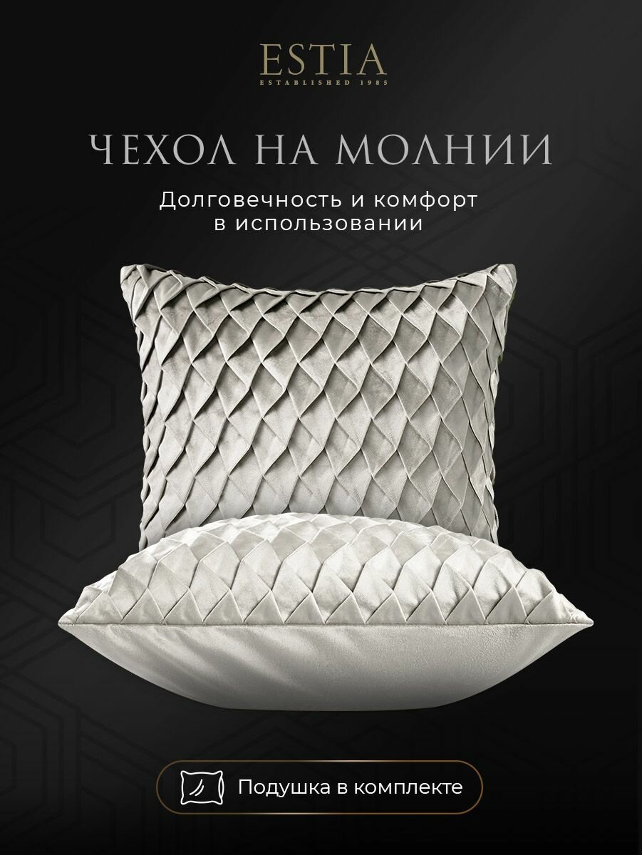 ESTIA Подушка декоративная в подарок "Вэнна" бархатная ткань с тиснением, 45x45