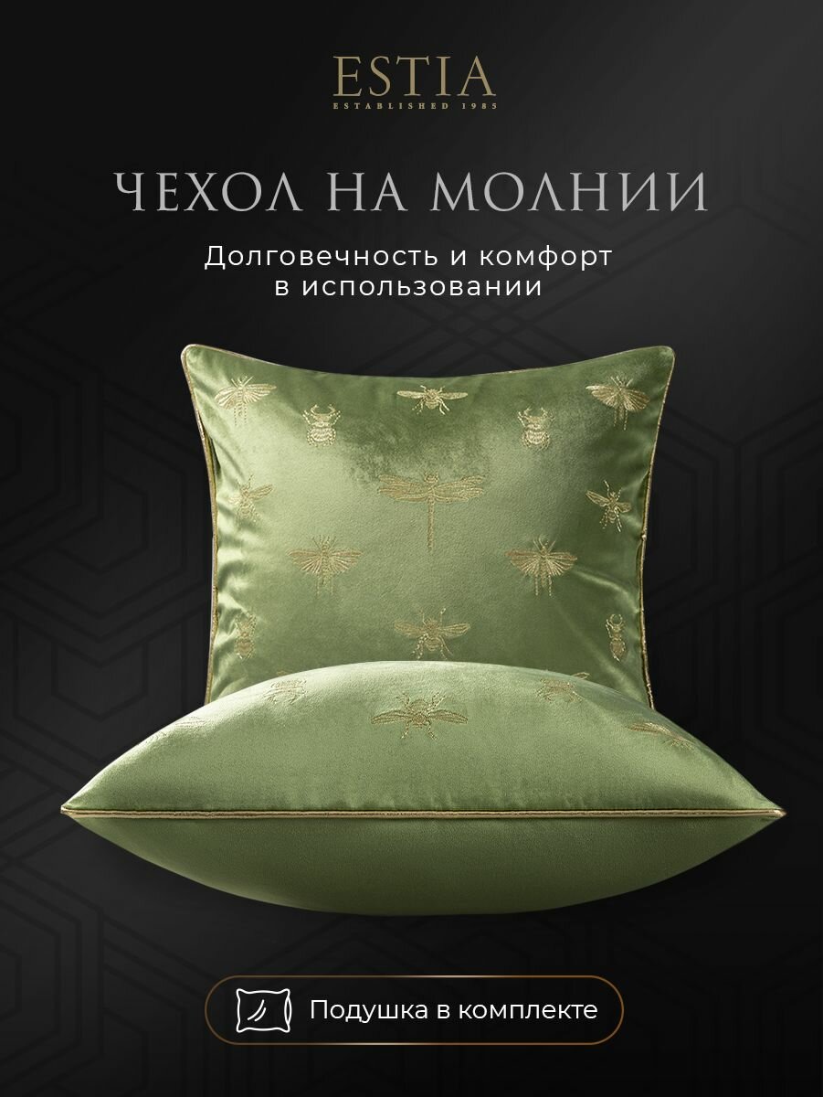 СохранитьESTIA Подушка декоративная в подарок "Инсетти" с вышивкой, 45x45 интересное: