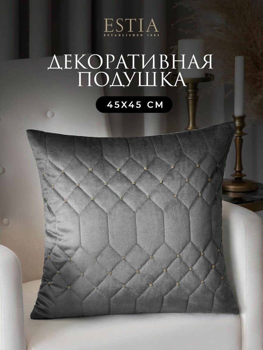 СохранитьESTIA Подушка декоративная в подарок "Норина" с бисерной вышивкой, 45x45, серая интересное: