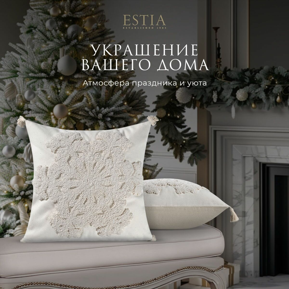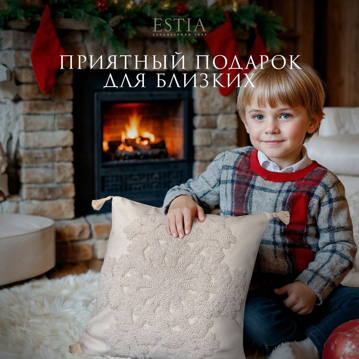 Купить ESTIA Подушка декоративная в подарок "Элма" в чехле на молнии с вышивкой и кистями "Снежинка", 45x45