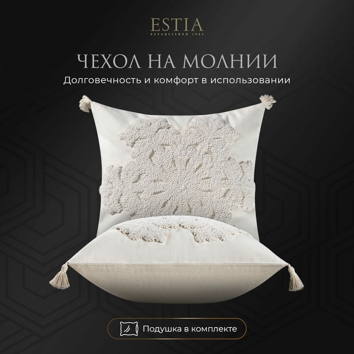 ESTIA Подушка декоративная в подарок "Ева" с декоративными кисточками, 45x45
