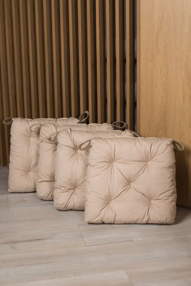 Комплект (4 шт) Подушек на стул, 40/35x38x7, бежевый интересное: