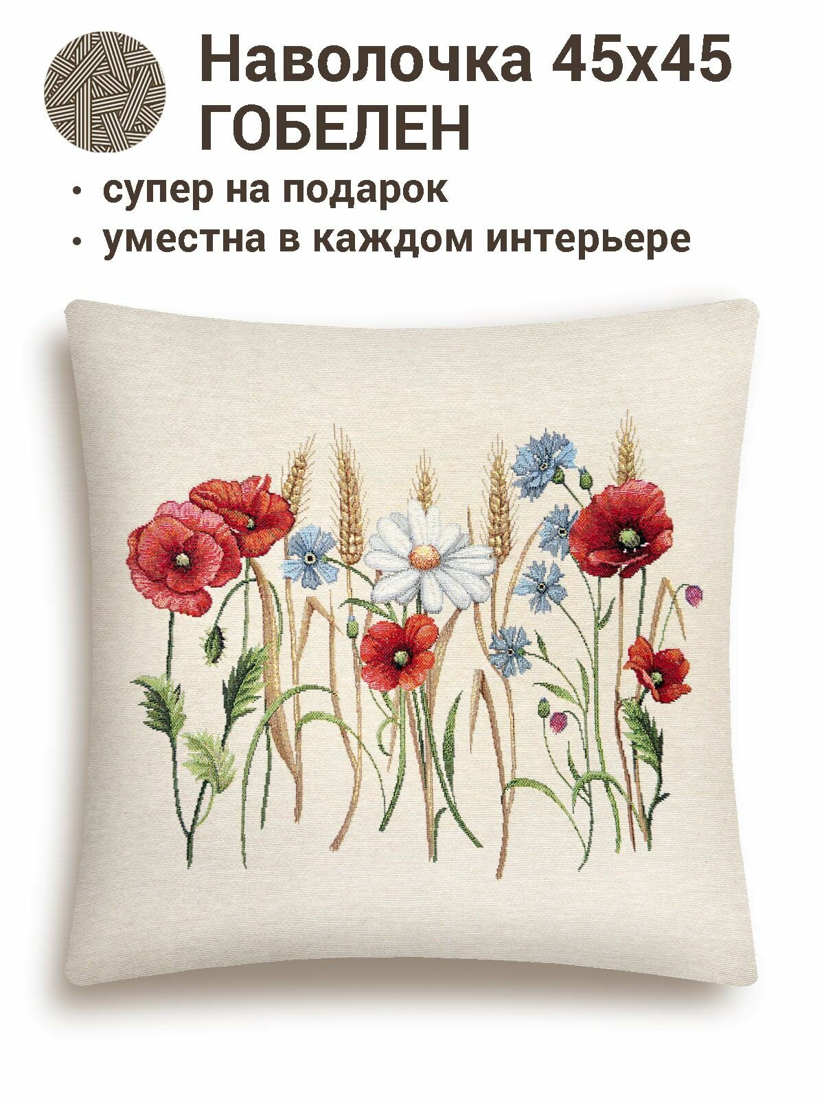 СохранитьНаволочка из гобелена Le Gobelin Разнотравье Маки 45х45 см интересное: