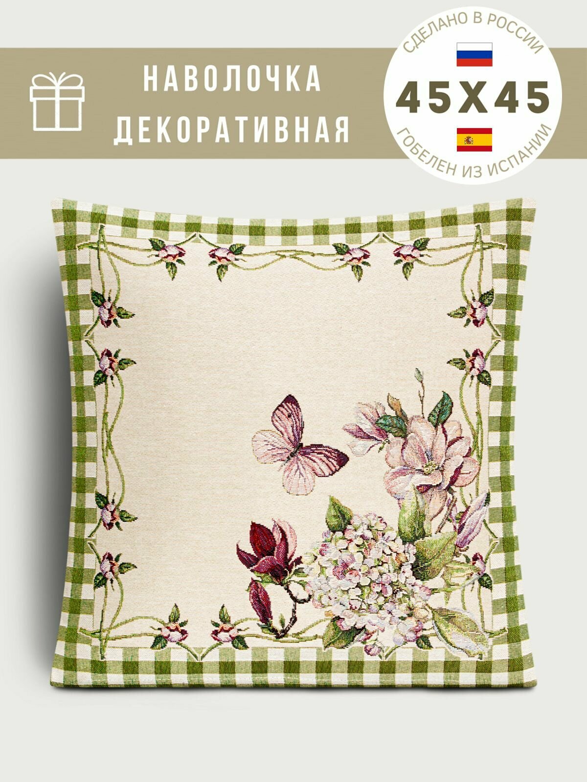 СохранитьНаволочка из гобелена Le Gobelin Гортензия зеленая 45х45 см интересное: