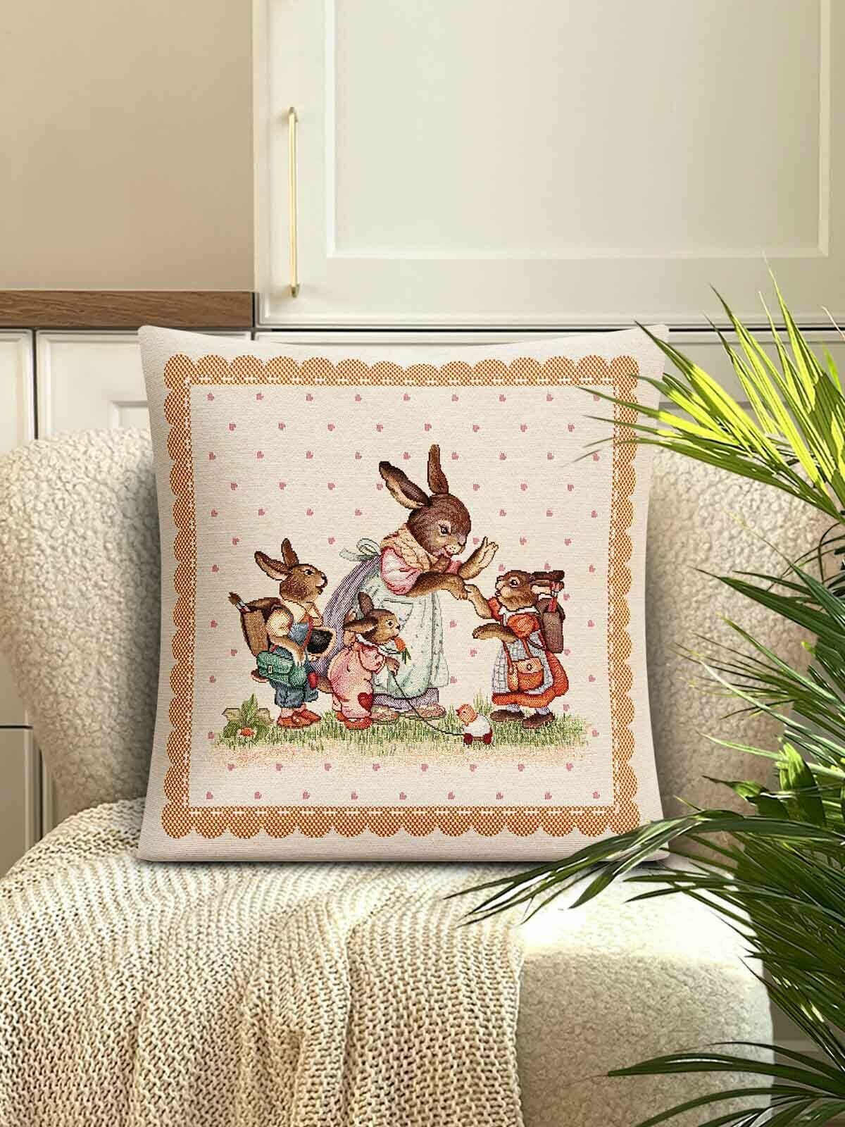 Купить Наволочка из гобелена Le Gobelin Заячьи сказки Охра 45х45 см