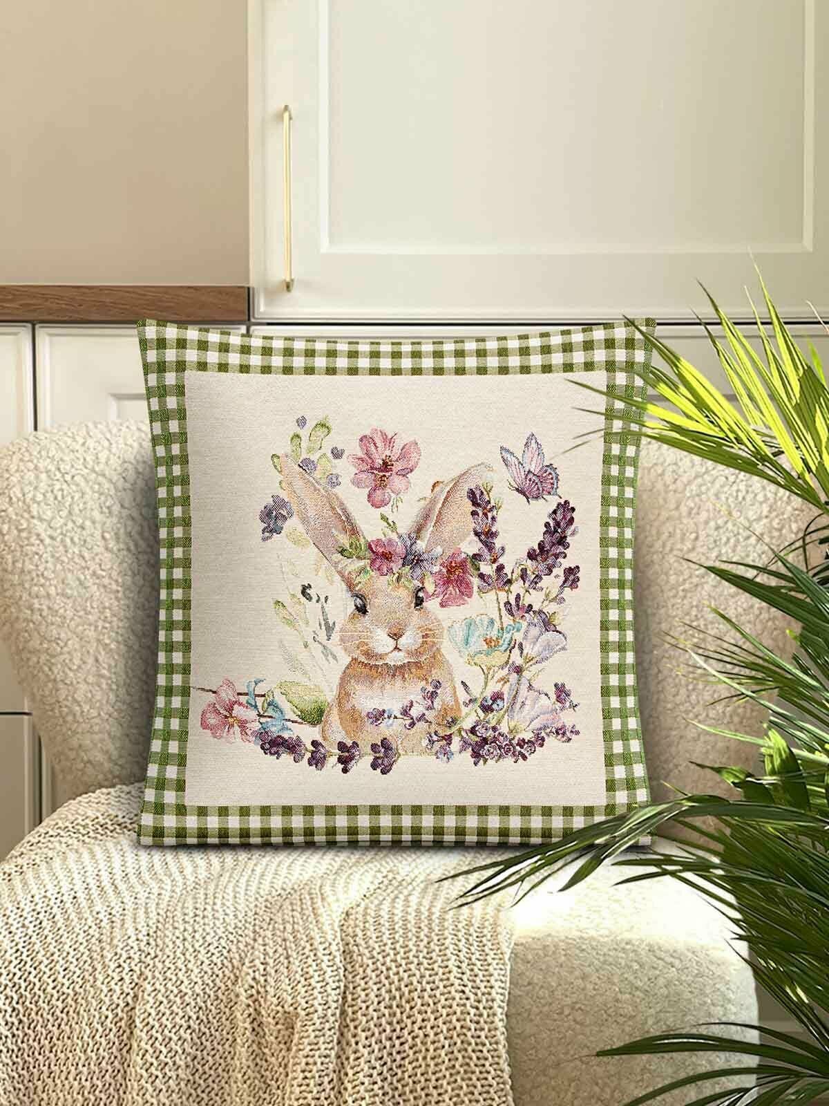 Наволочка из гобелена Le Gobelin Заячьи сказки Зеленый 45х45 см