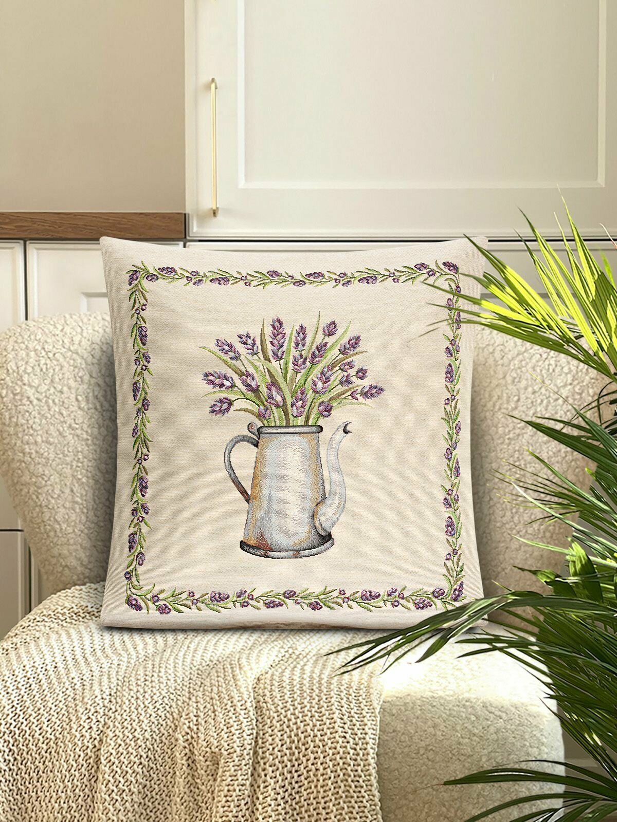 Наволочка из гобелена Le Gobelin Лавандовые веточки Кувшин 45х45 см
