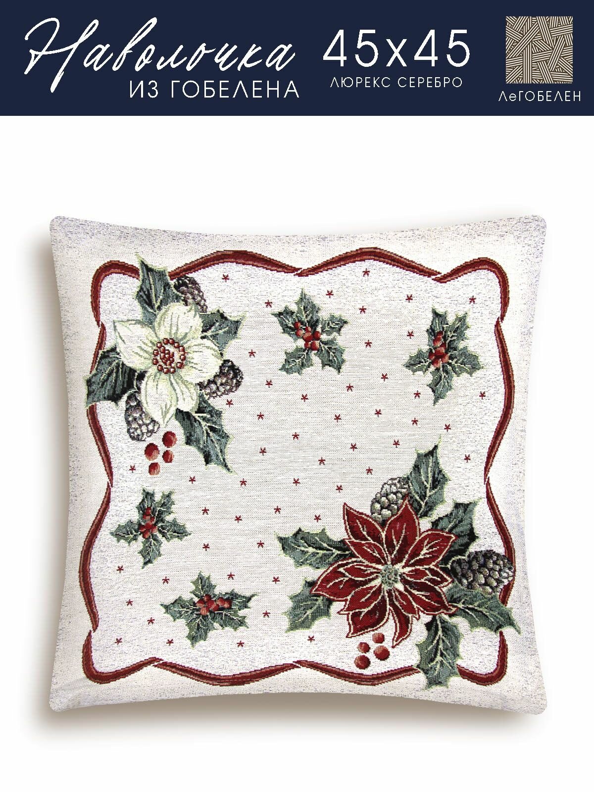 Наволочка новогодняя Le Gobelin Пуансетия бордюр 45х45 см