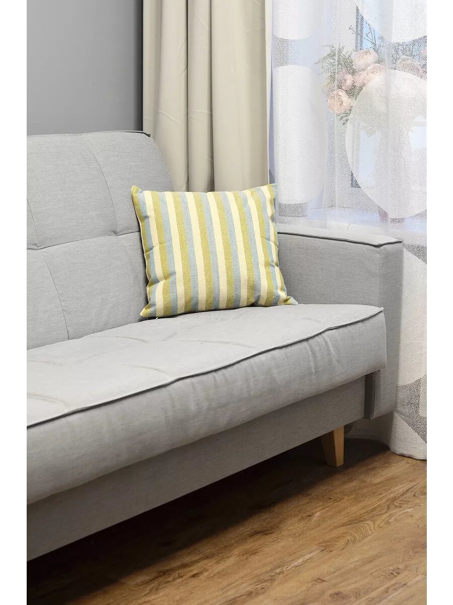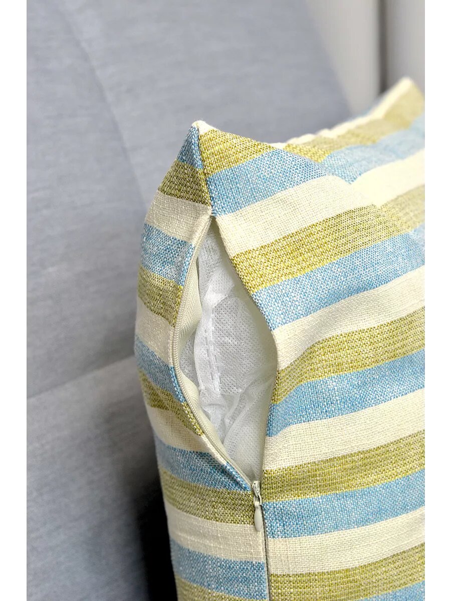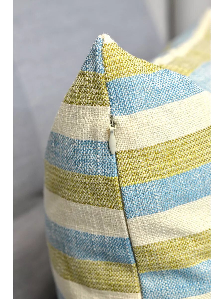 Чехол для декоративной подушки 40х40 см, голубой/зеленый/бежевый в полоску интересное: