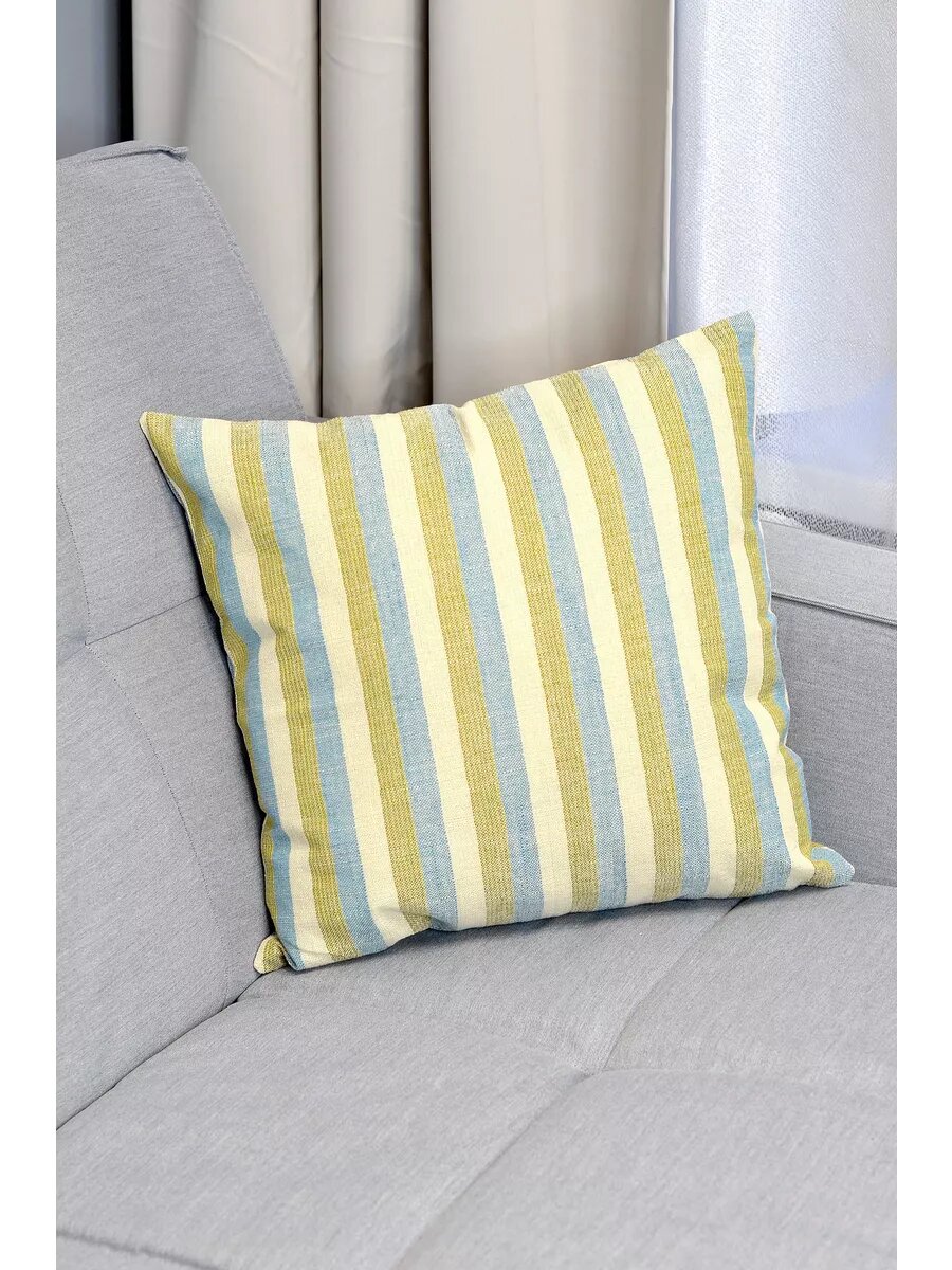 Купить Чехол для декоративной подушки 40х40 см, голубой/зеленый/бежевый в полоску