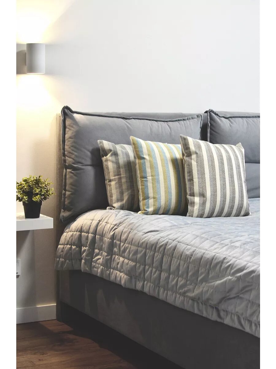 Чехол для декоративной подушки 40х40 см, черный/голубой/желтый в полоску интересное: