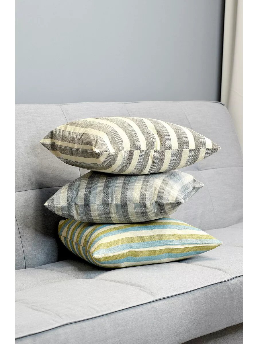 Чехол для декоративной подушки 40х40 см, голубой/зеленый/бежевый в полоску