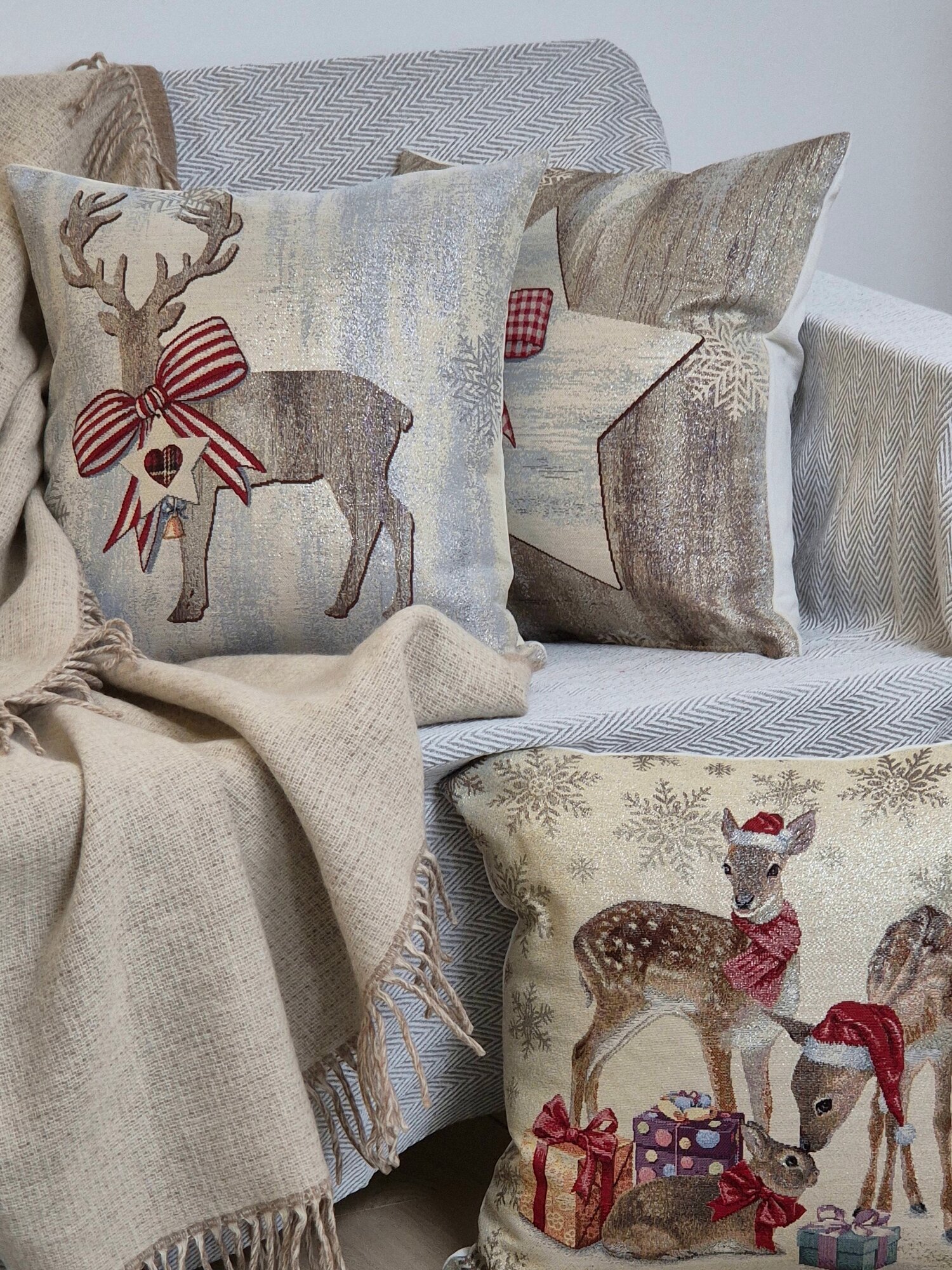 Купить Наволочка декоративная Le Gobelin Новогодний прованс олени и заяц 45х45 см