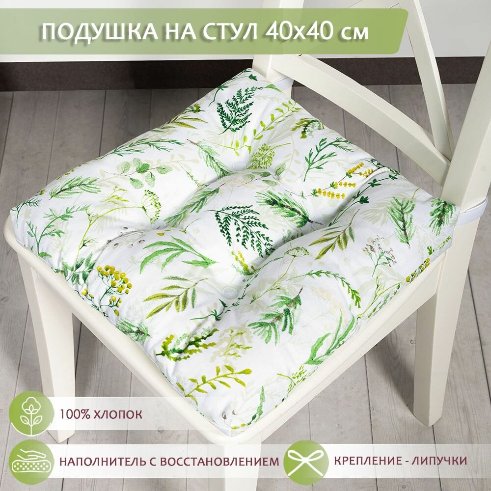 Подушка на стул / 40*40 см / на липучках / хлопок / для кухни, зала, гостиной, беседки / Хвоя / Altali интересное: