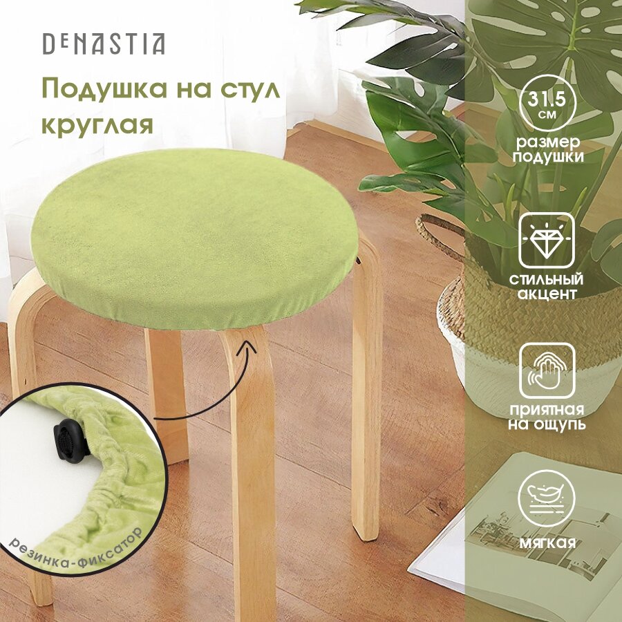 Купить Круглая подушка на стул DeNASTIA 31,5см бархатная, цвет светло-зелёный P111210
