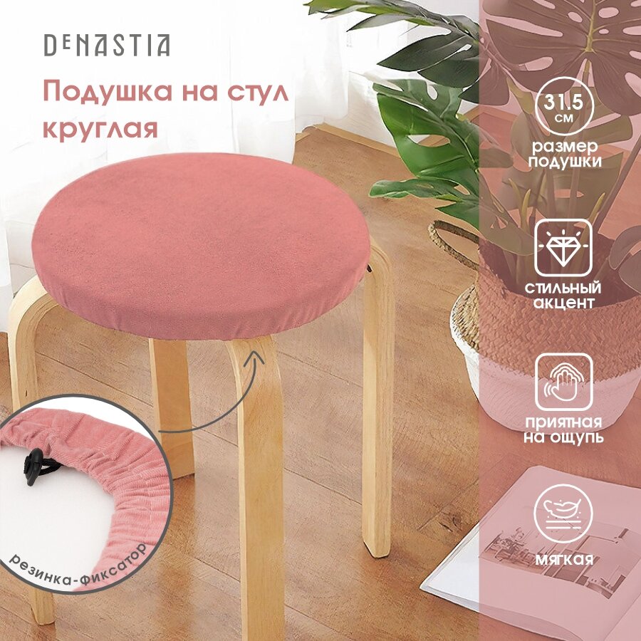 Купить Круглая подушка на стул DeNASTIA 31,5см, бархатная, цвет розовый P111209