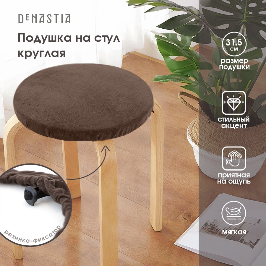 Купить Круглая подушка на стул DeNASTIA 31,5см, бархатная, цвет коричневый, P111193