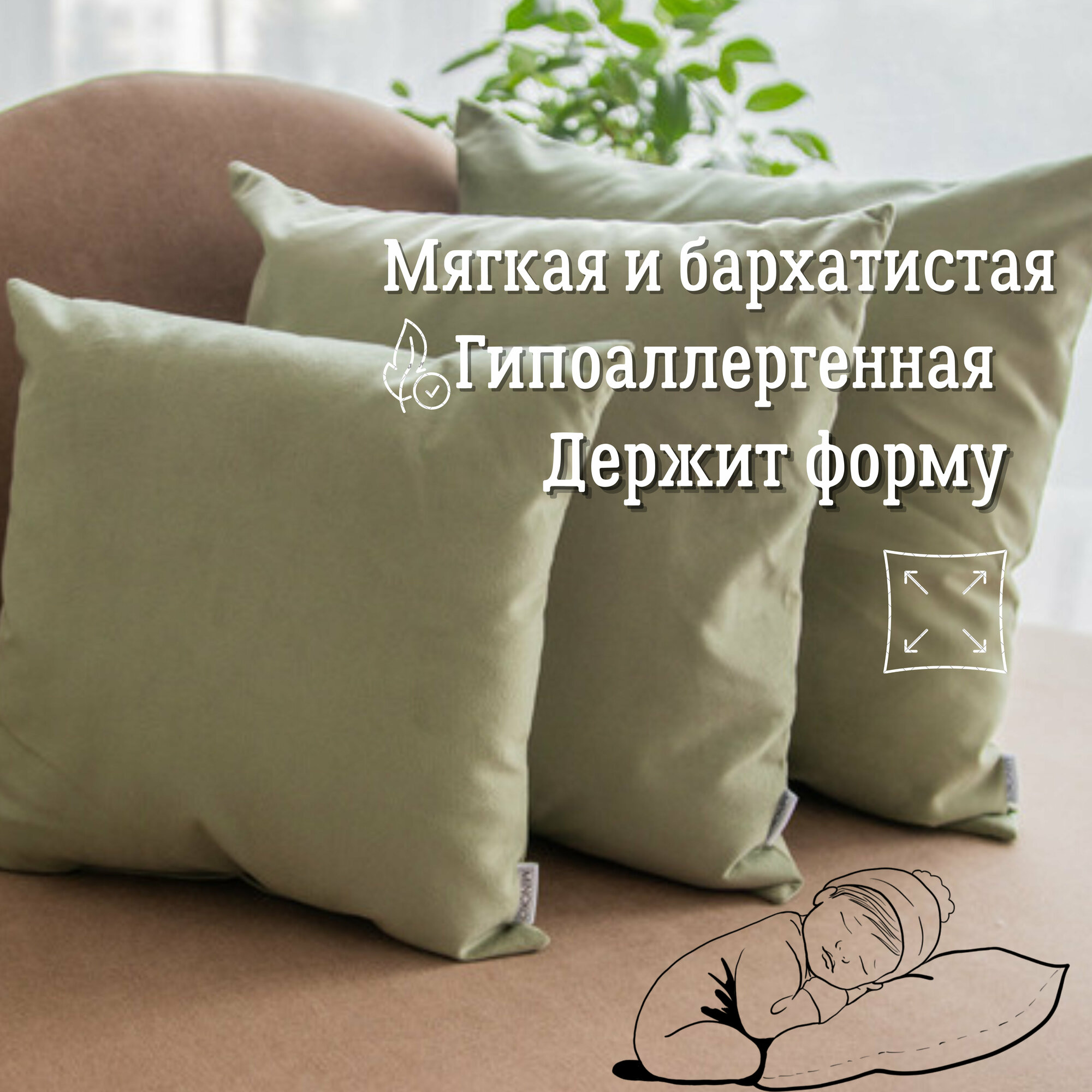 Подушка декоративная / диванная 42 х 42 MINOKO Velure Олива 2 шт. / Съемный чехол