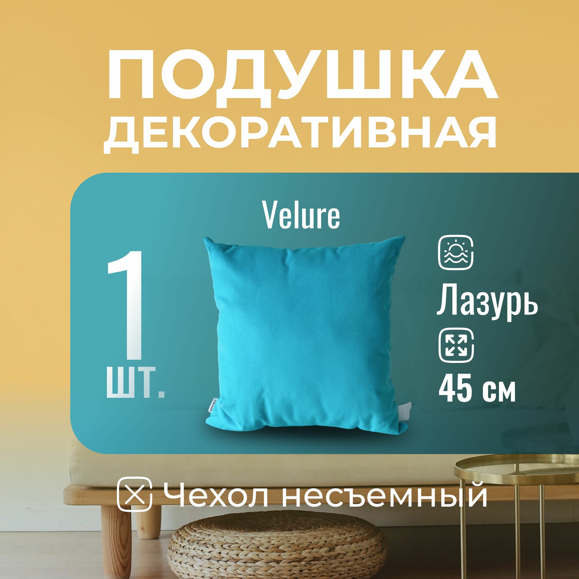Подушка декоративная / диванная 45 х 45 MINOKO Velure Лазурь интересное: