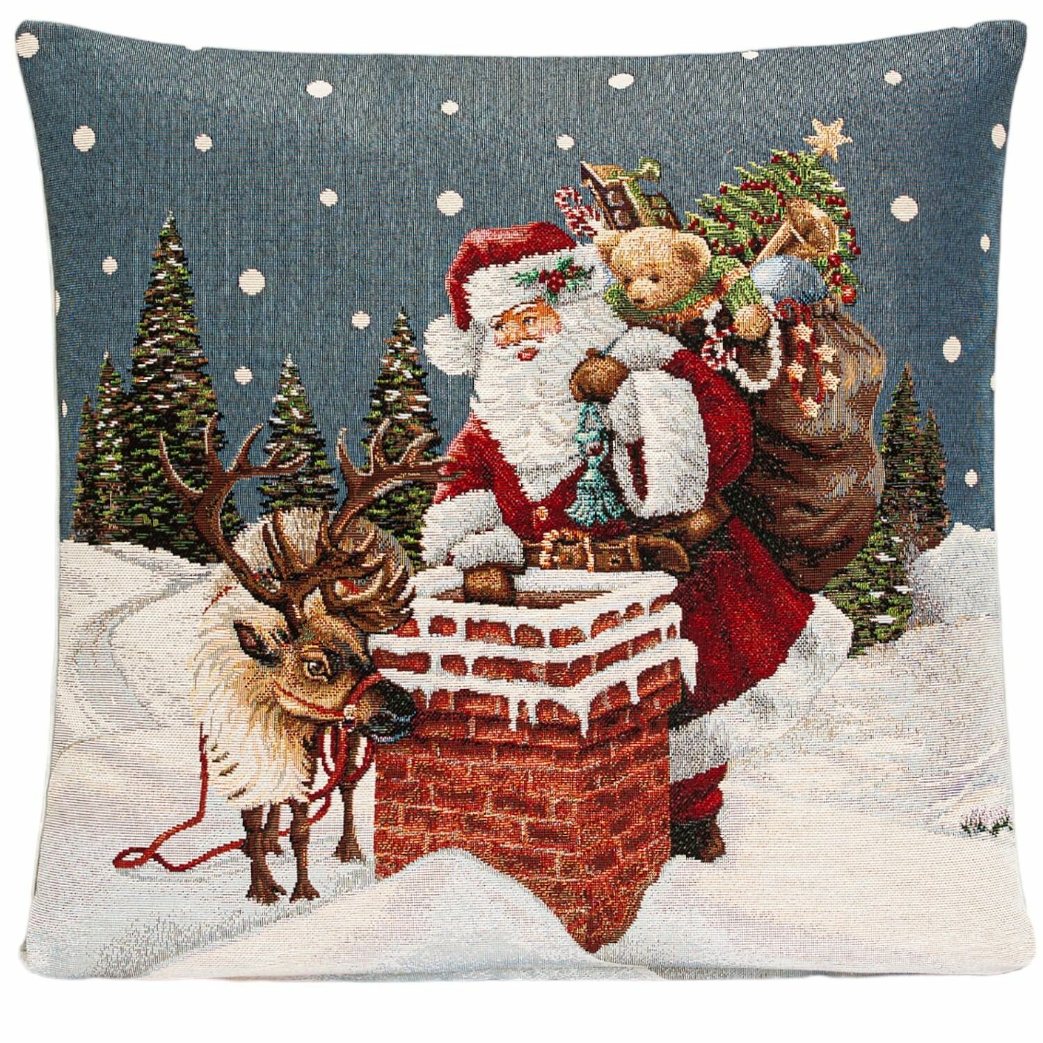 Наволочка декоративная Le Gobelin Дед Мороз и белый олень 45х45 см