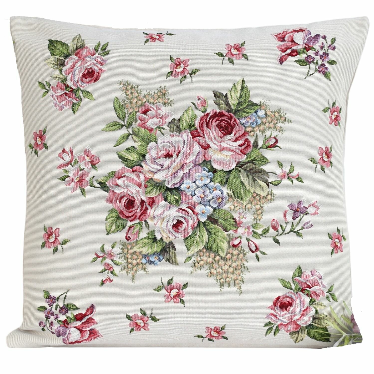 Наволочка декоративная Le Gobelin Розы Дамаск мелкие цветы бежевый фон 45х45 см