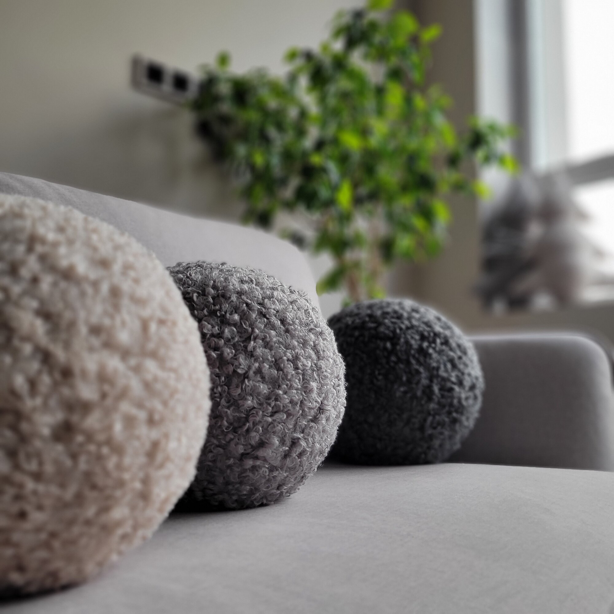 Подушка-шар "букле" 25x25см (серый, удл. ворс)