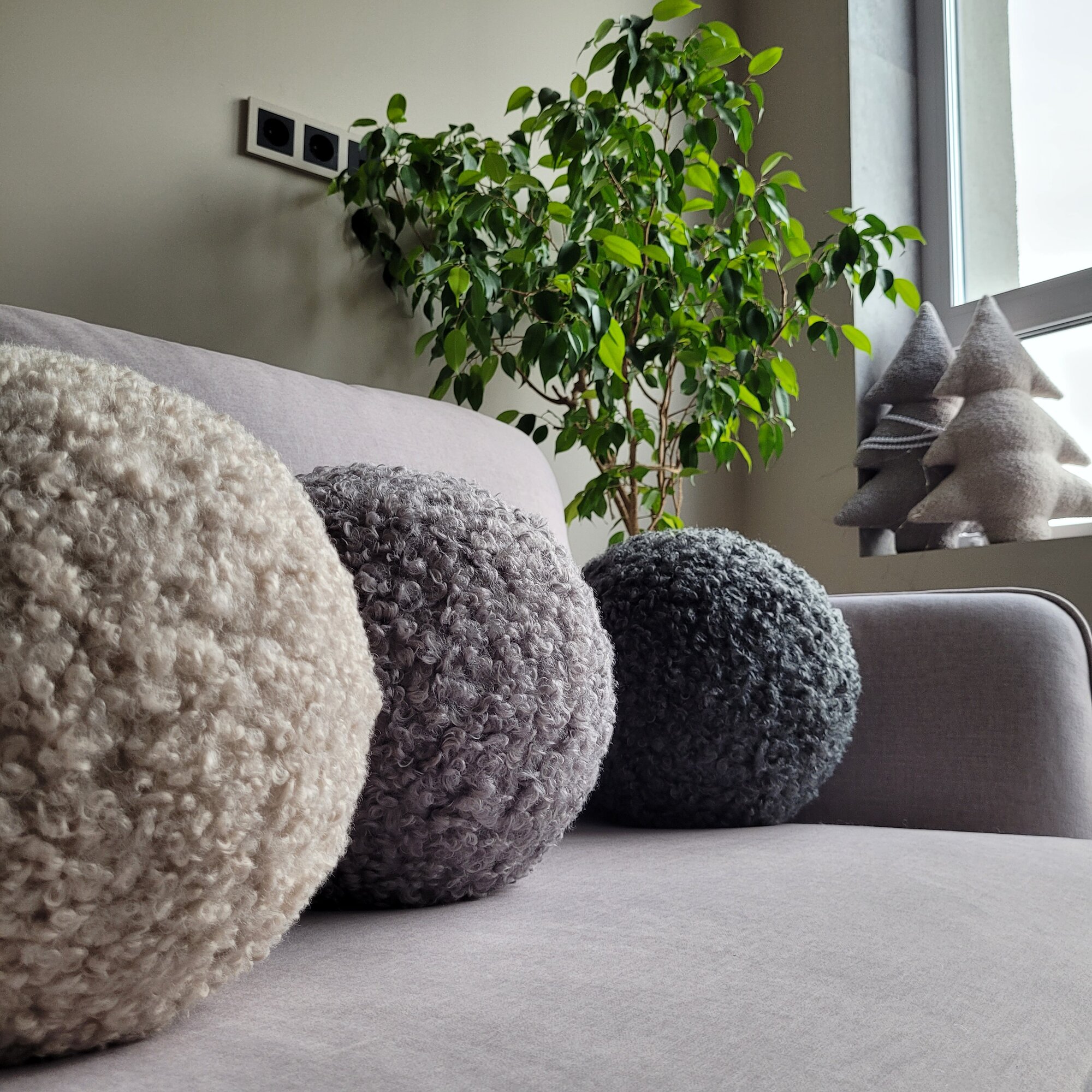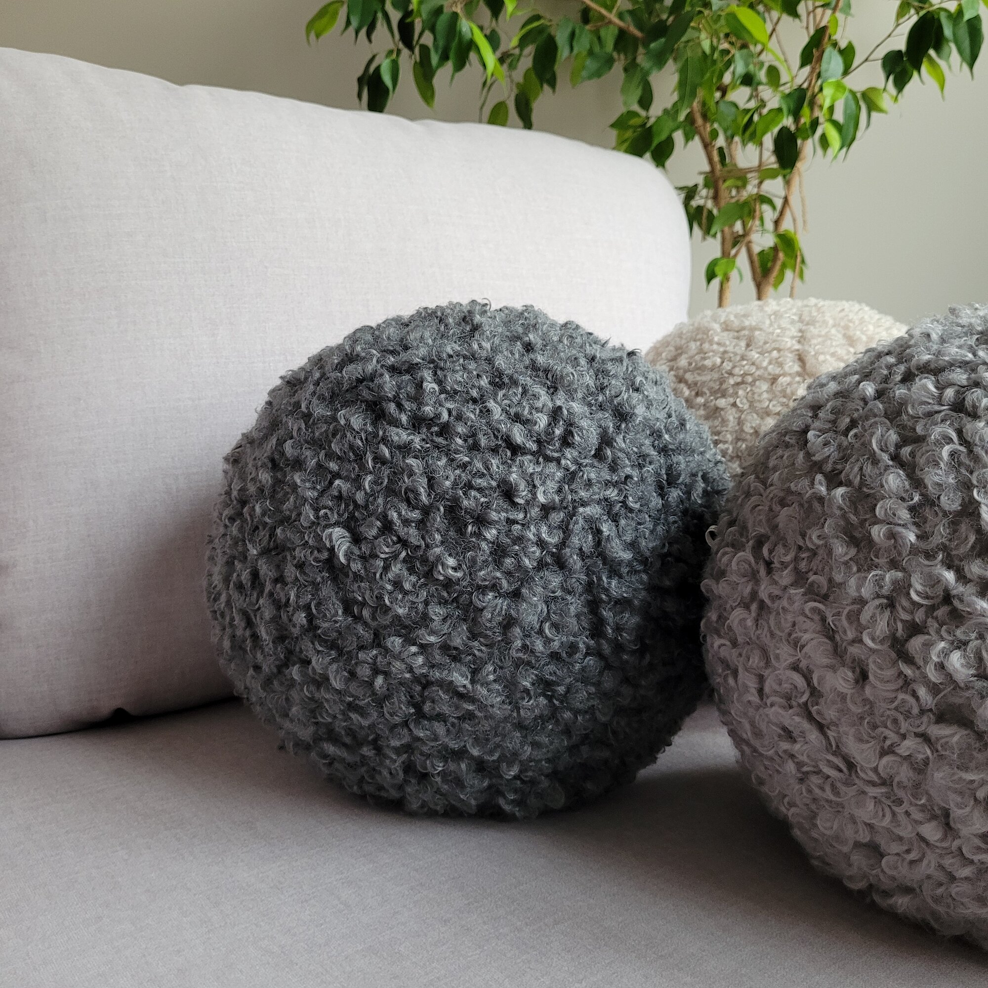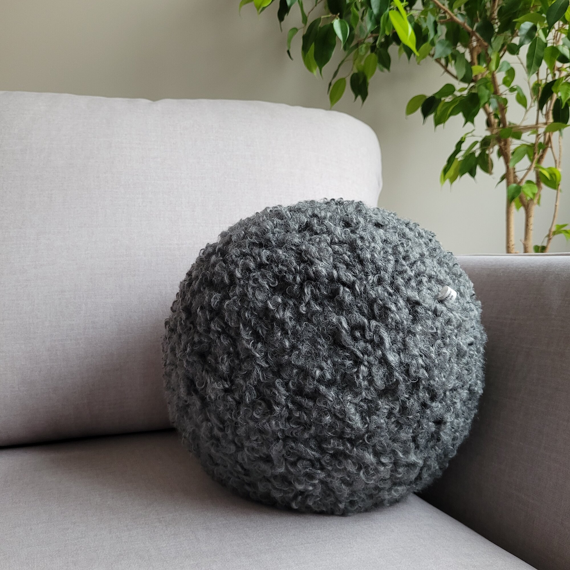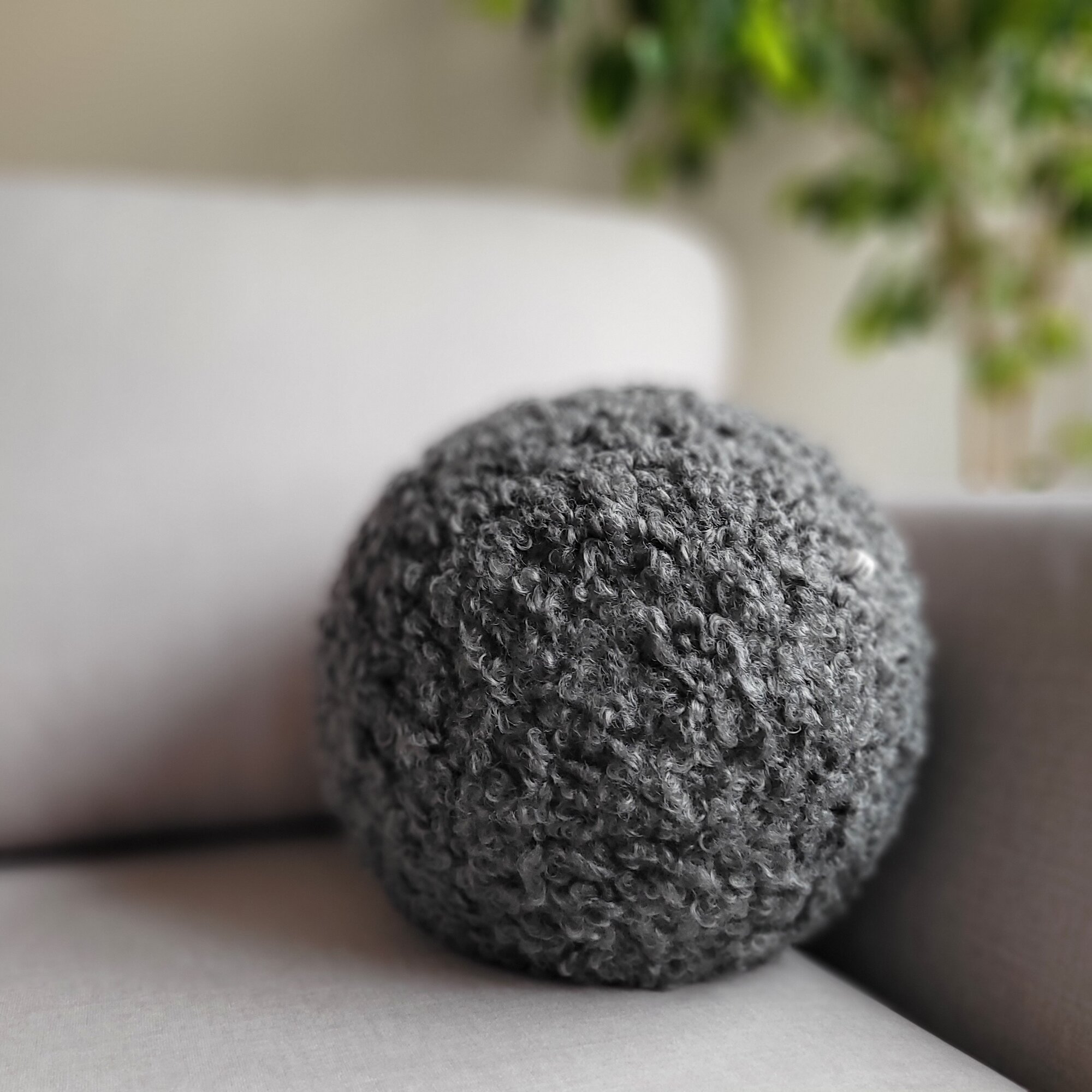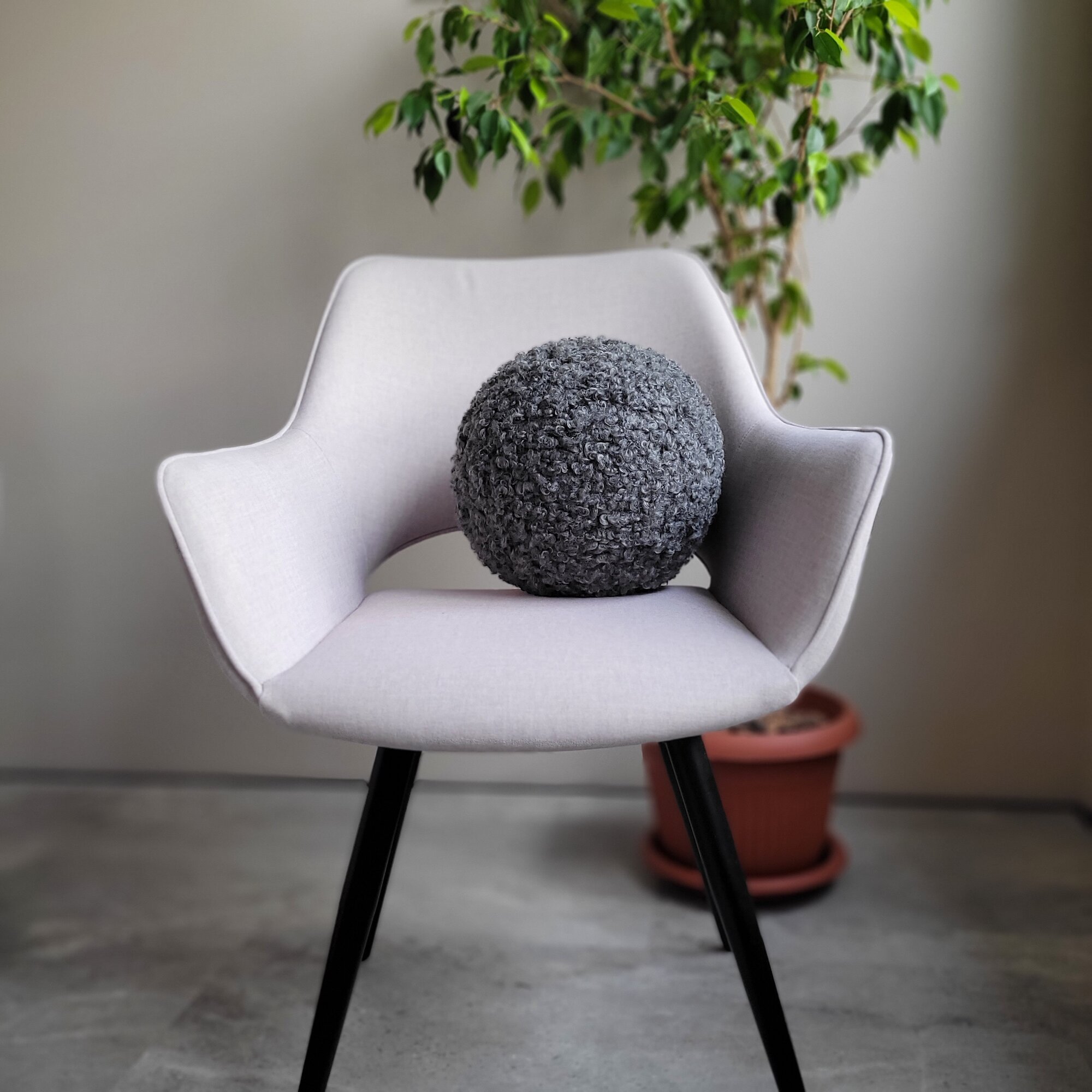 Купить Подушка-шар "букле" 25x25см (темно-серый, удл. ворс)