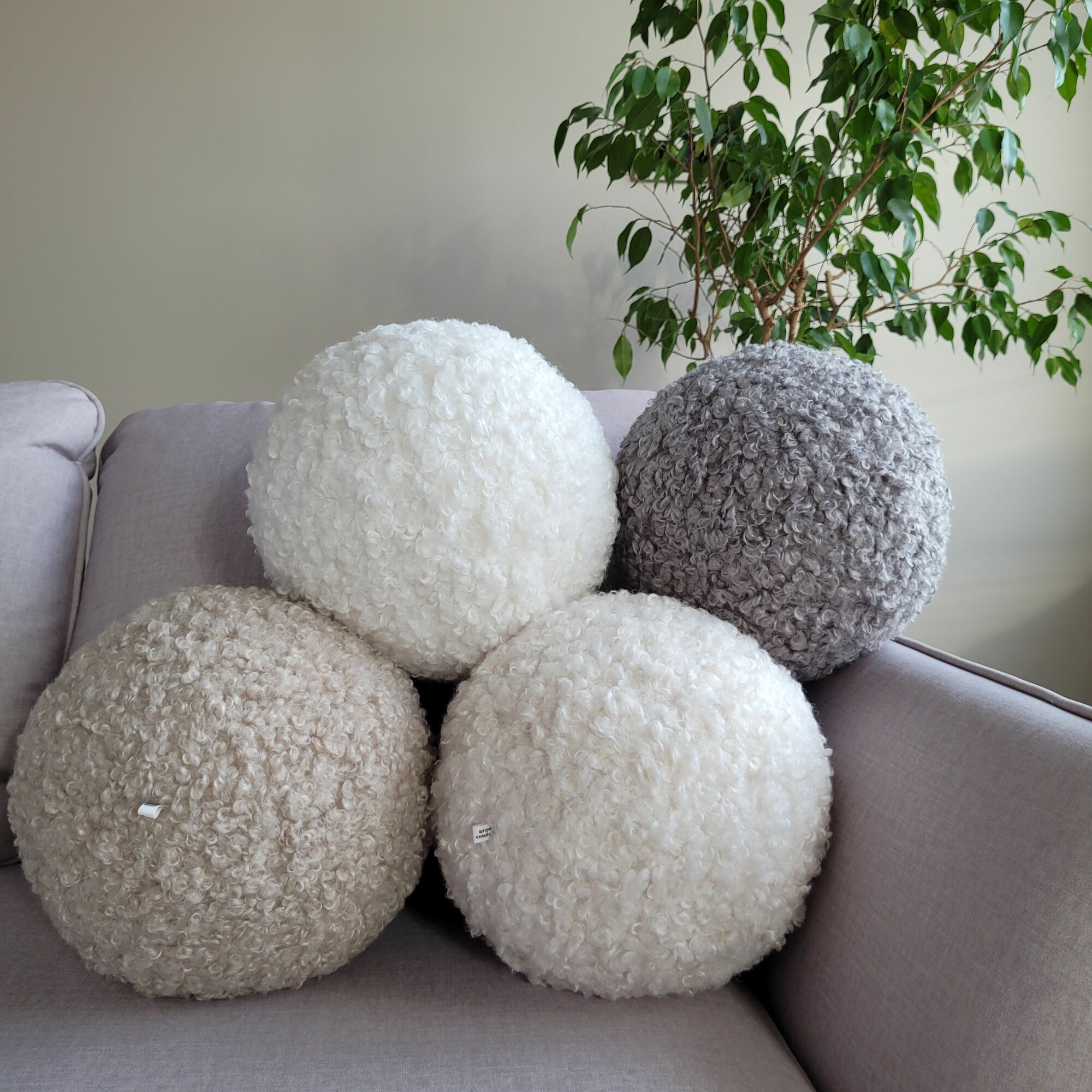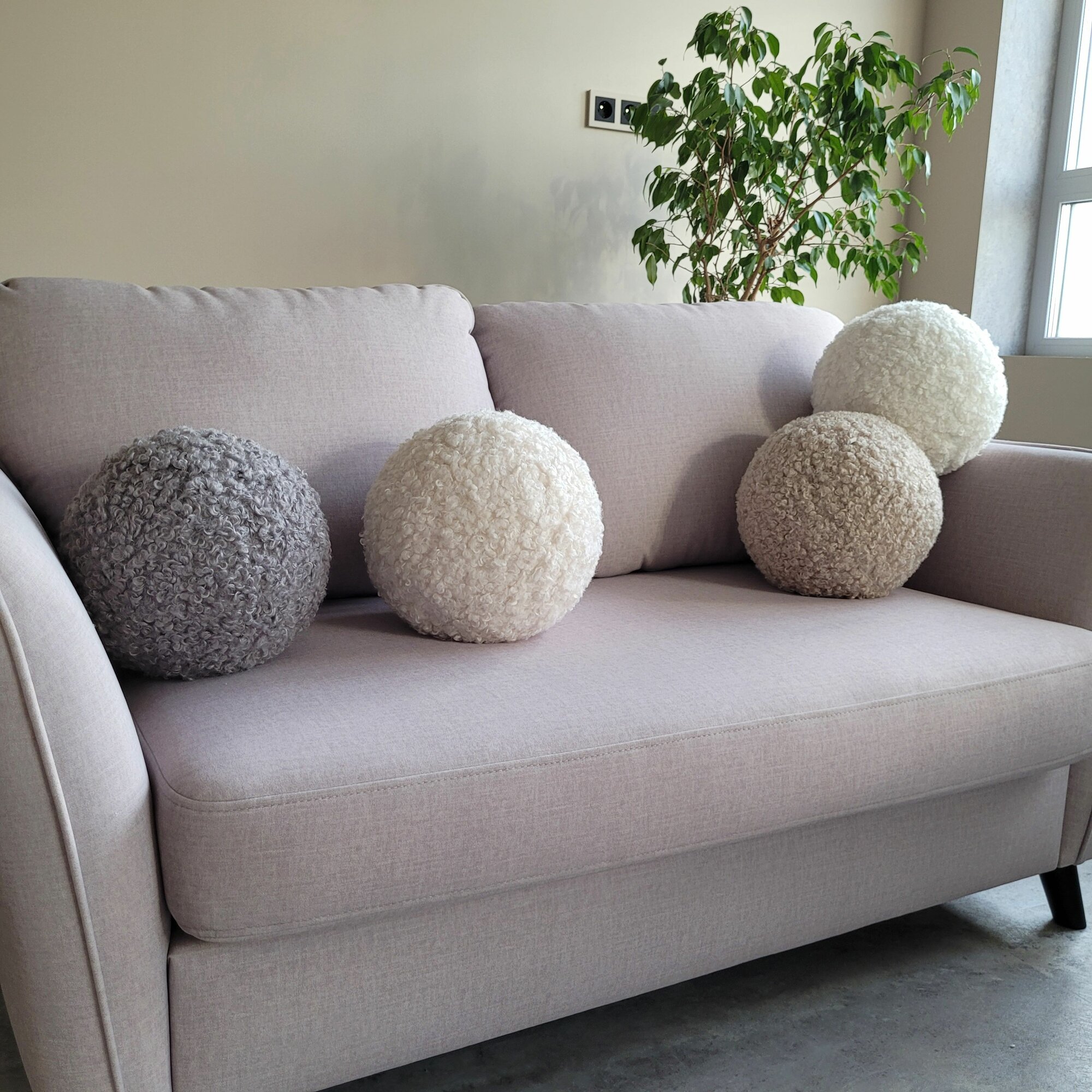 Купить Подушка-шар "букле" 25x25см (кремовый, удл. ворс)